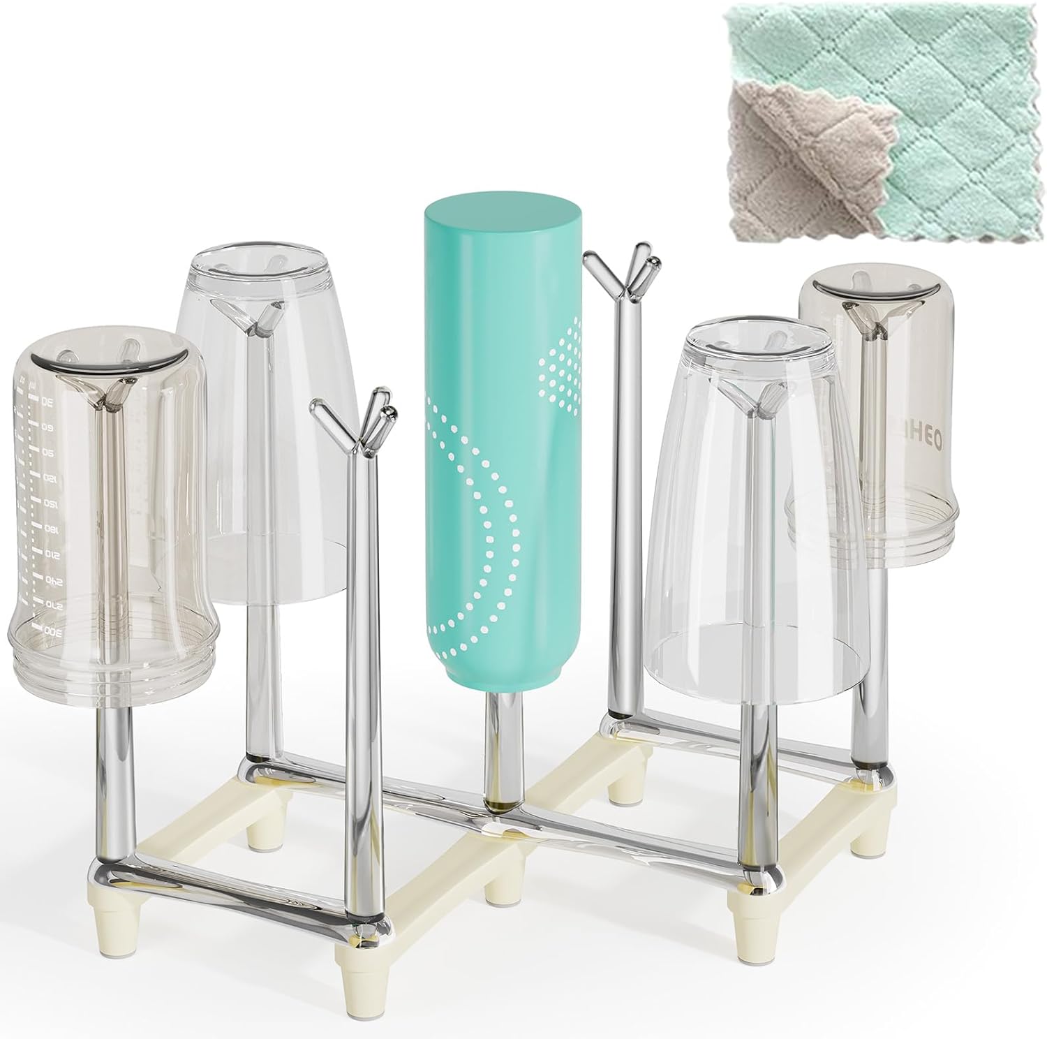 - PREMIUM MATERIAL - Foldable cups drying rack made of high quality PP material, durable. Comes with an absorbent cloth. Protect your cutlery from scratches.