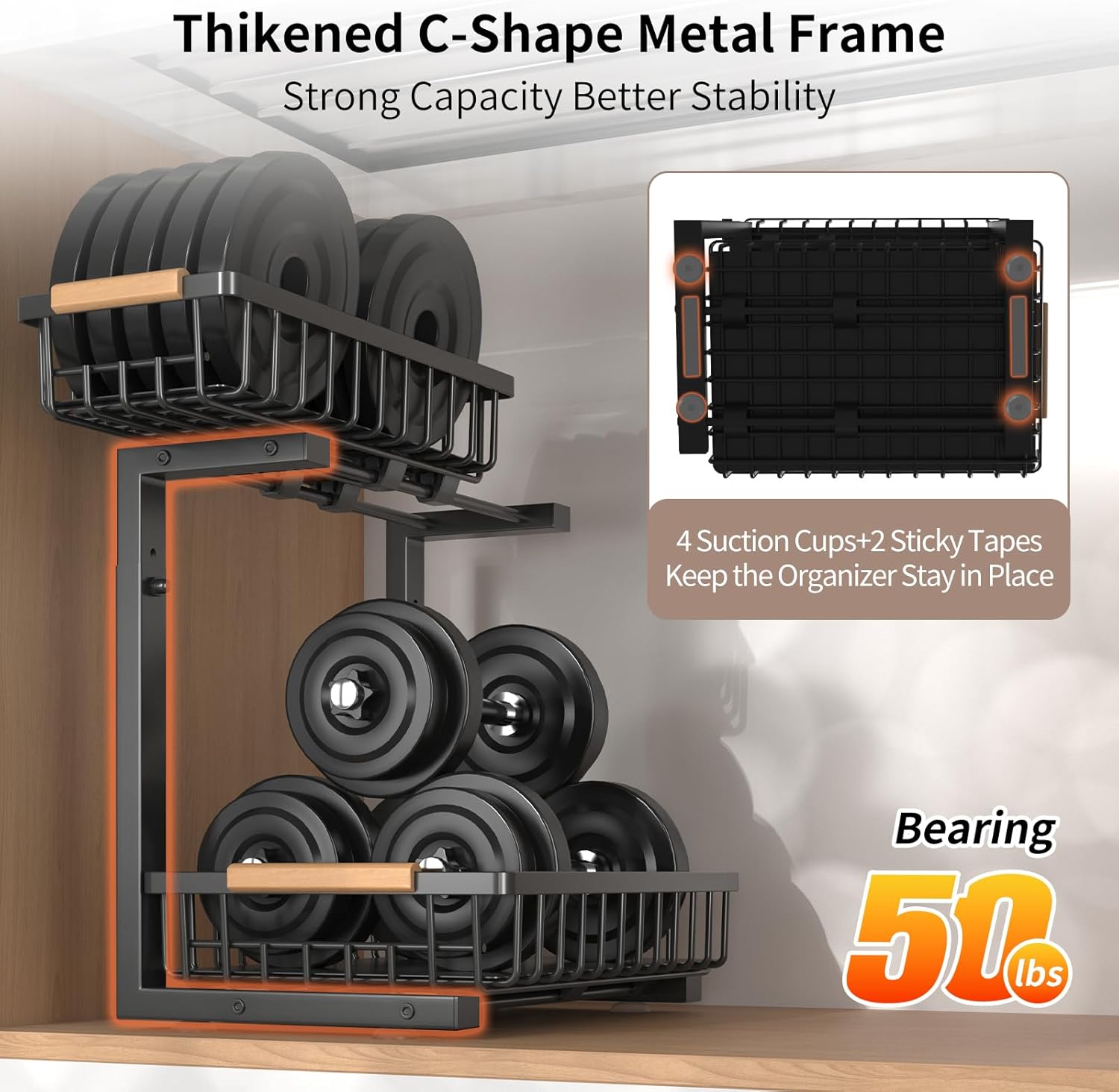 - 【Heavy-Duty Metal Structure】 Reinforced metal frame with widened C-brackets, the pull-out home organizers prevent sagging. Non-slip base combines 4 suction cups & 2 adhesive strips for vibration-proof stability.