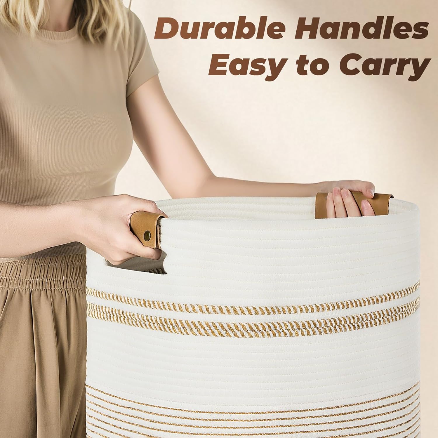 - 100% Cotton Handcrafted Design: Our blanket basket is a stylish clothes hamper made from 100% cotton, providing a soft yet durable solution for your storage needs. This handcrafted storage basket complements any decor with its natural aesthetic.