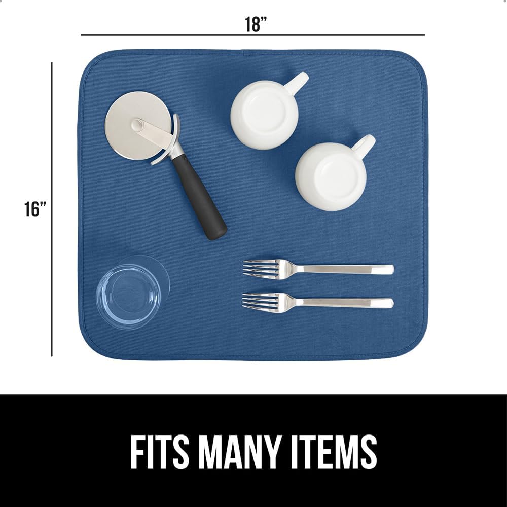 GORILLA GRIP Ultra Water Absorbent Microfiber Dish Drying Mat, Quick Dry Thick Mesh, Slip Resistant Pad for Sink Dishes or Under Rack, Kitchen Counter Accessories, 16x18, Machine Wash, Blue