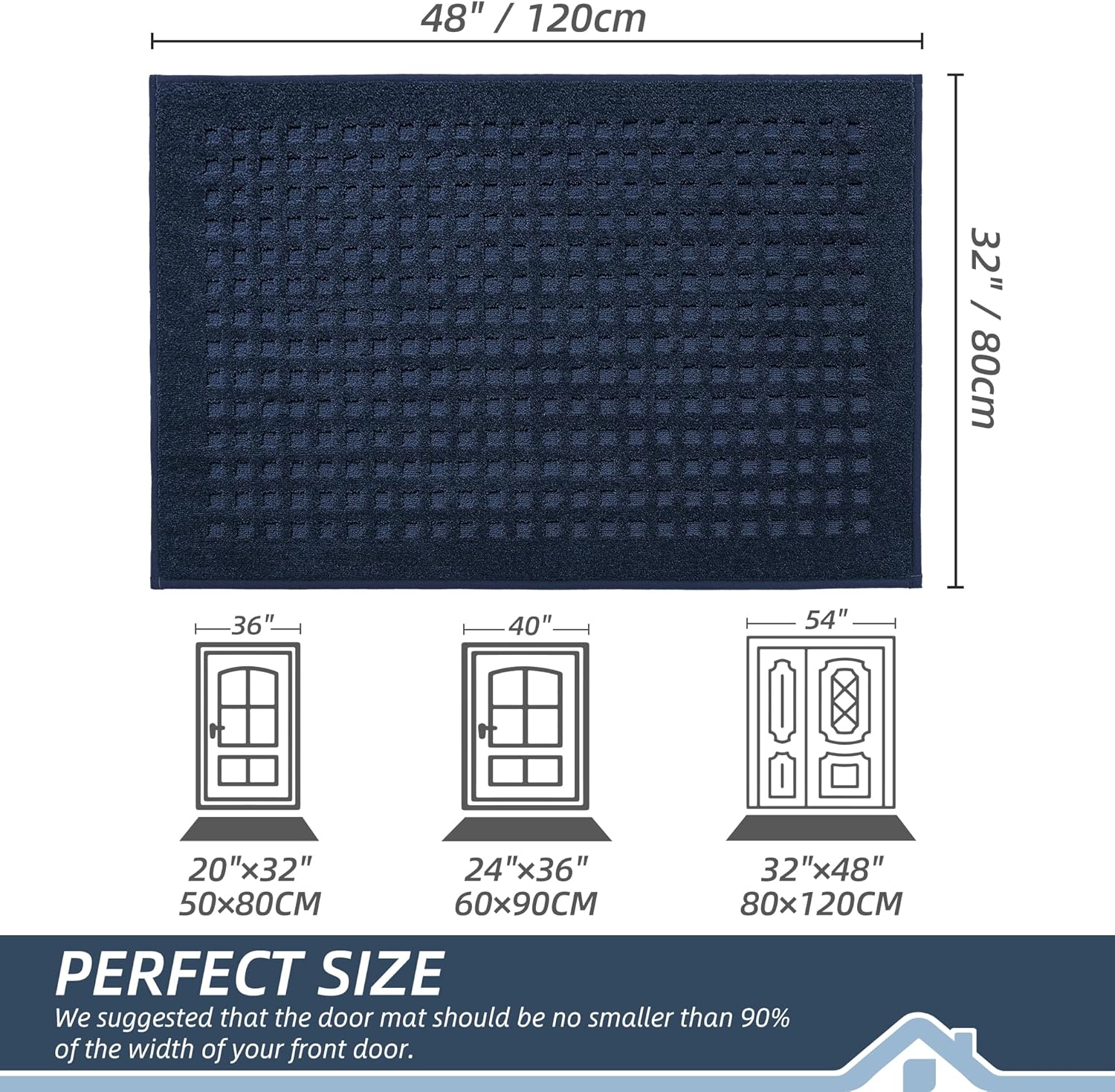 BEQHAUSE Waffle Door Mats Indoor 32"x48", Dog Mat for Muddy Paws Absorbent and Dirt Resist Floor Mats Non-Slip Washable Rugs for Entryway, Welcome Mat for Front Back Door, Muddy Wet Shoes, Navy Blue