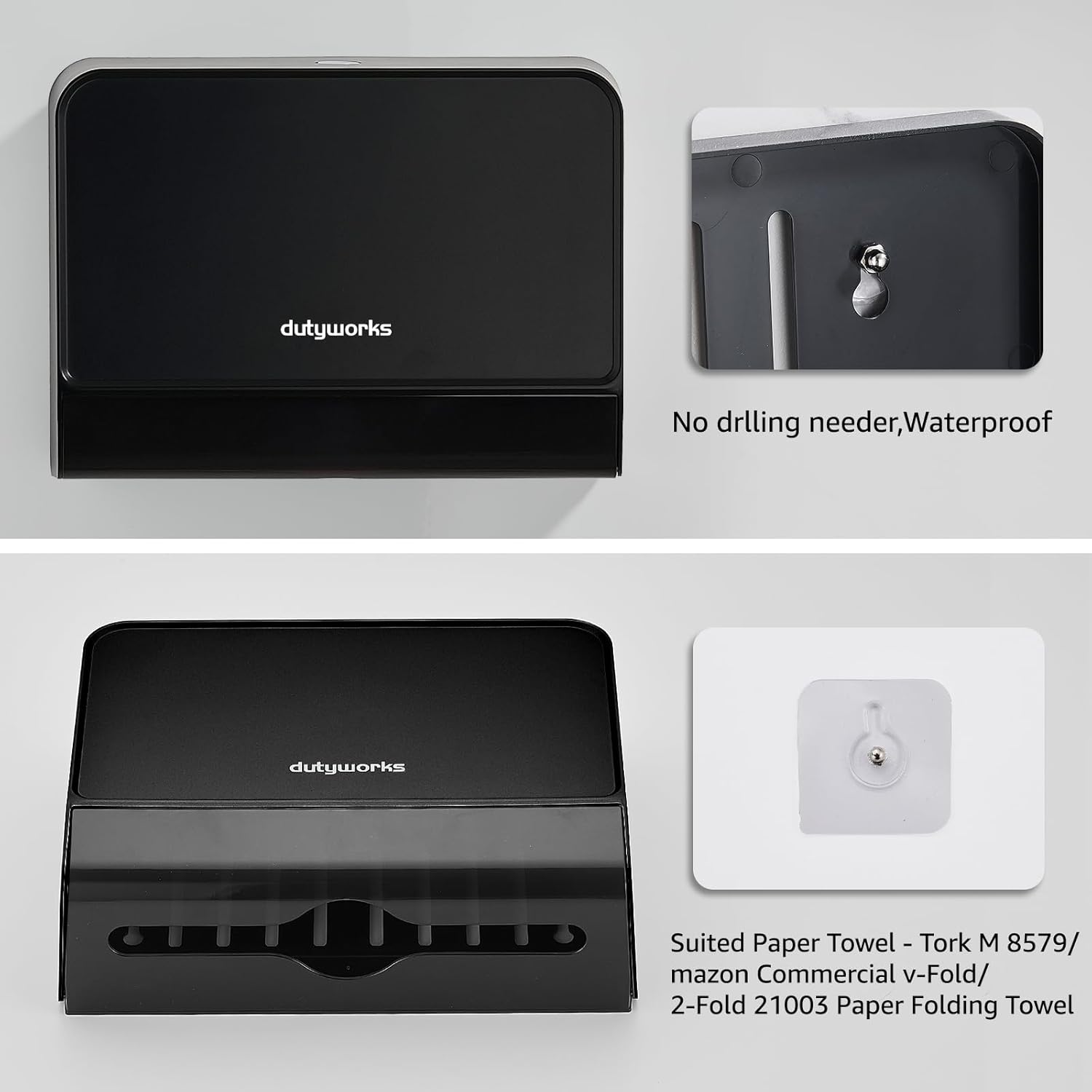 Paper Towel Dispenser Wall Mounted, Multifold Hand Towel Dispenser for Kitchen Bathroom Home Business, Trifold/C Fold/Z Fold Paper Towel Holder with Lock, Universal Paper, Black