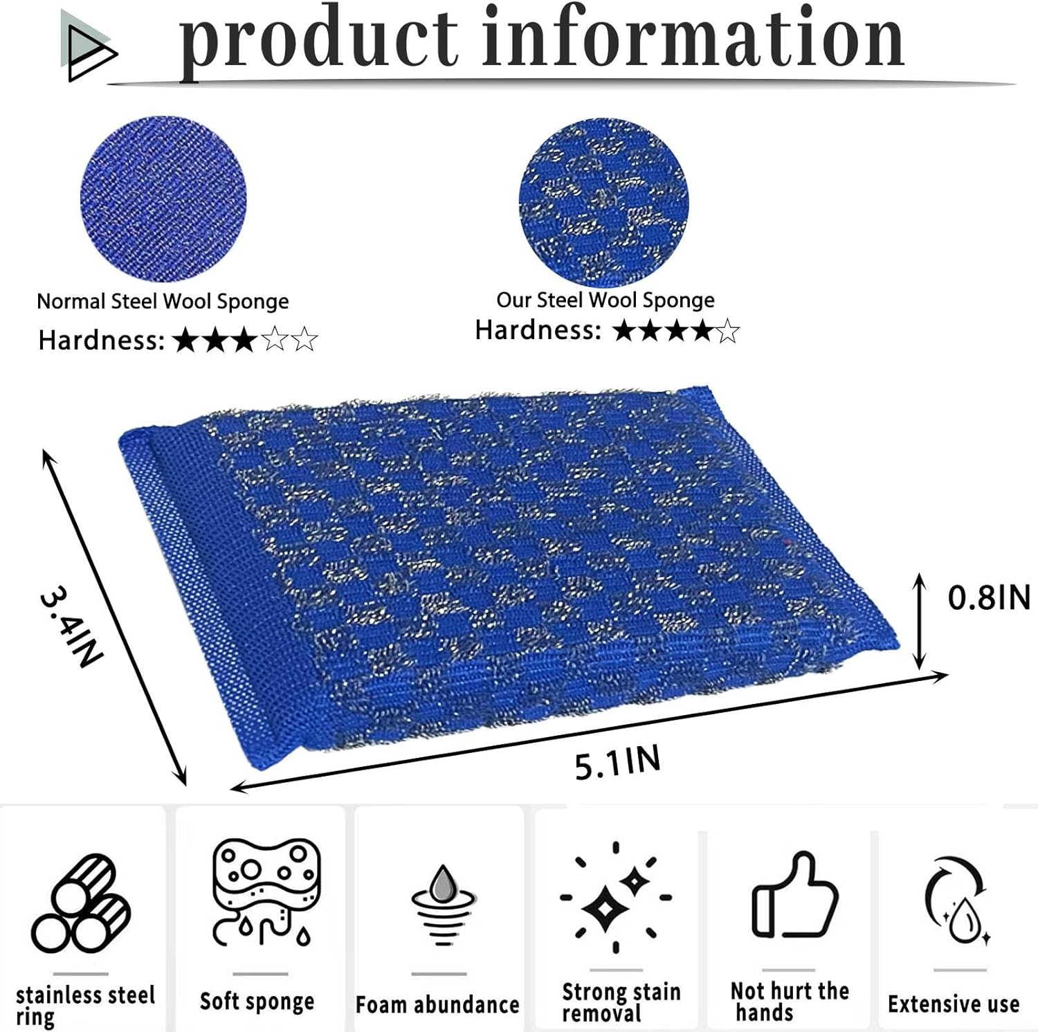 - Steel wool scrubber: Our kitchen scrubbers sponges are made of high-quality stainless steel wire and thick sponges, rhomboid stainless steel wool surface is harder than normal sponges, can quickly scrubbing hard-to-clean surfaces like shower tile floors, greasy stove top and stainless steel grilling baskets