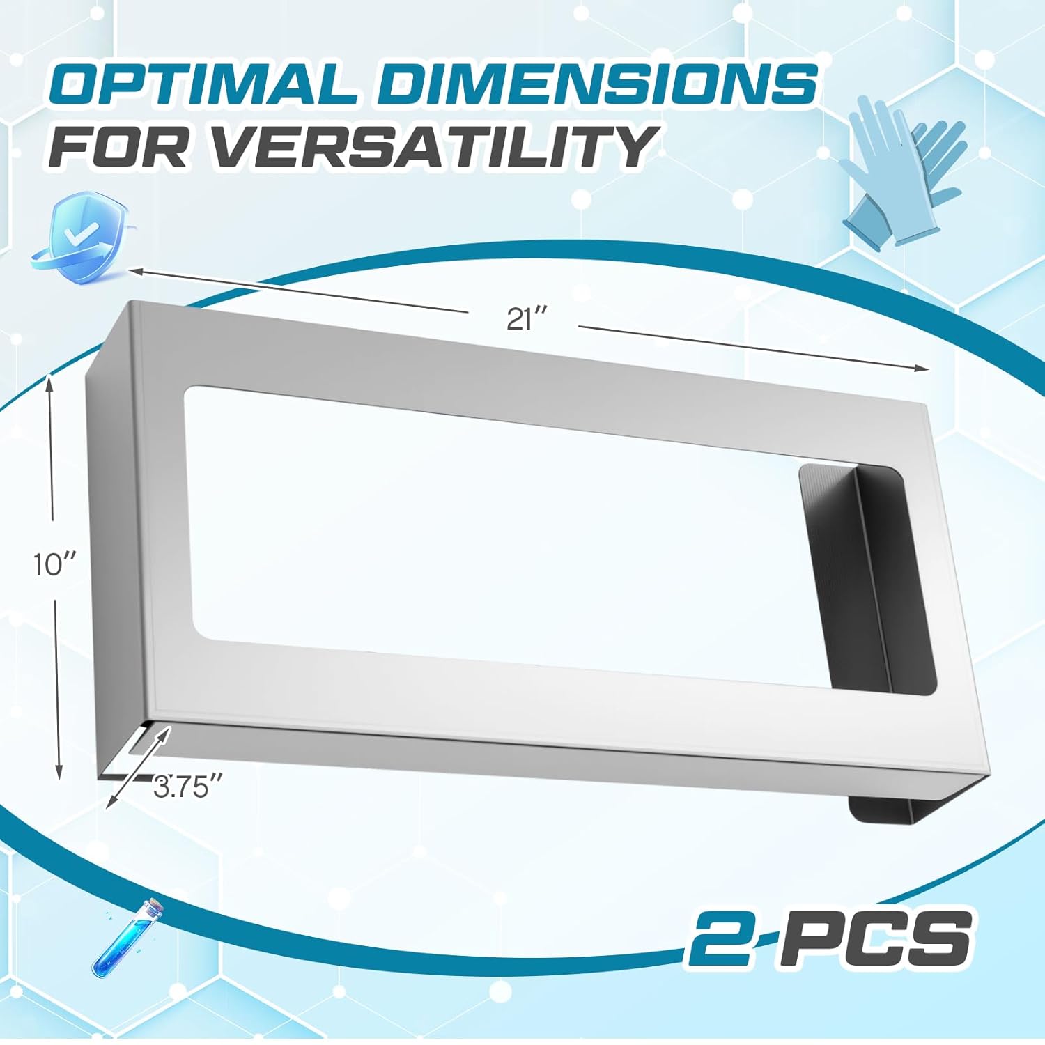 - Optimal Dimensions for Versatility: each glove box dispenser measures approximately 10"H x 21"W x 3 3/4"D, ensuring a compact fit in various environments without compromising on storage capacity