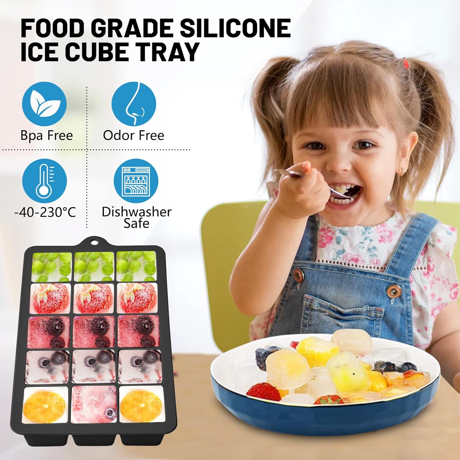 Silicone Ice Cube Trays 3Packs, Easy Release Ice Cube Molds with Lid, Freezer Stackable Ice Maker for Whiskey, Baby Food, BPA Free (Black)