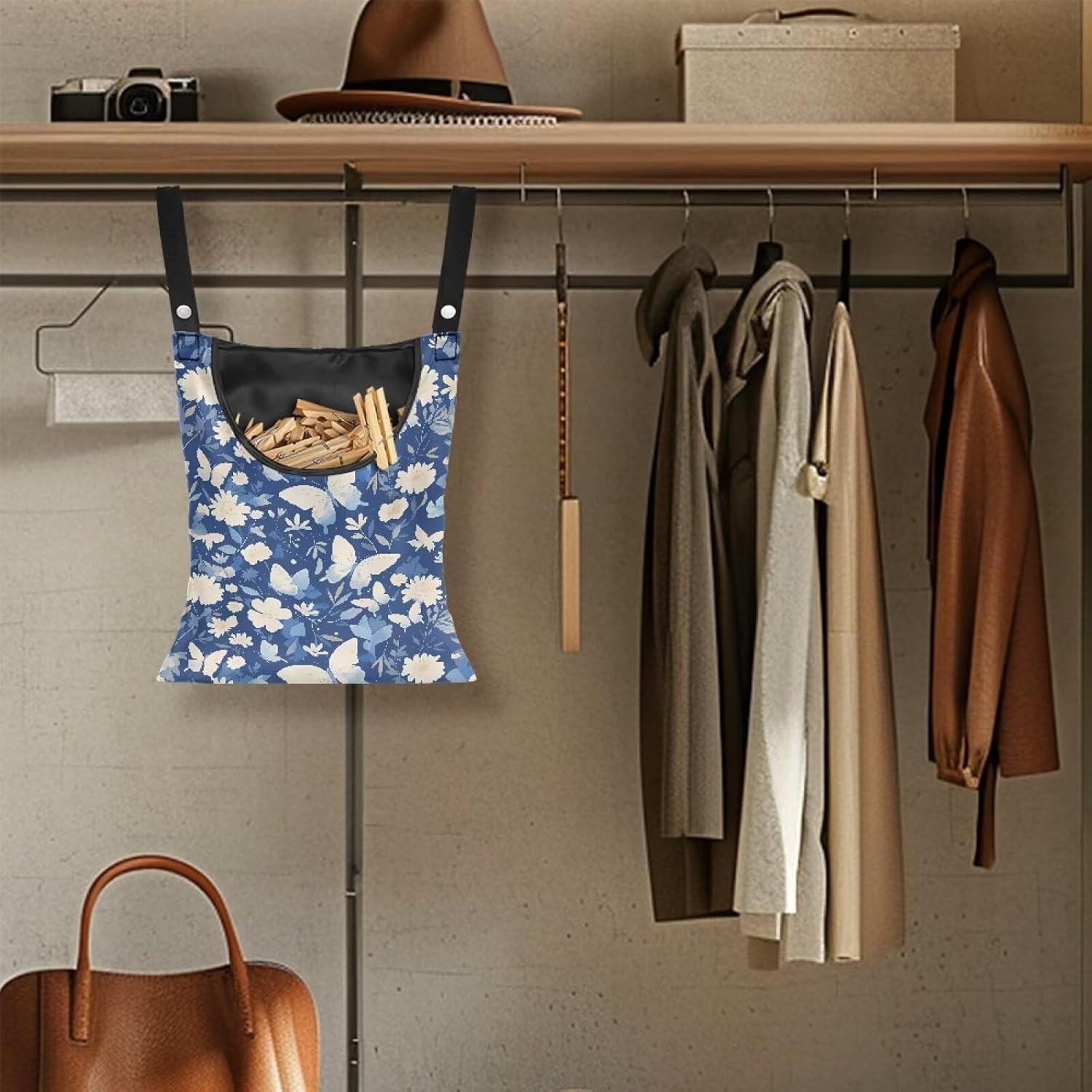 2 Pcs Butterfly and Floral Clothespin Bag with Large Opening Clothes Pins Holder Outdoor and Laundry Bag Hanging Fits for Clothesline Outdoor