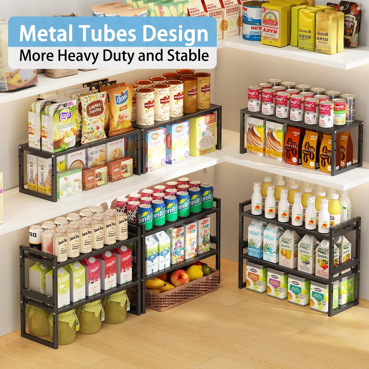 2 Pack Expandable Kitchen Cabinet Shelves Organizer,Heavy Duty Metal Shelving Units and Storage,Stackable Adjustable Kitchen Storage Organization Shelves Rack for Counter Cupboard Pantry,Length:20.5"