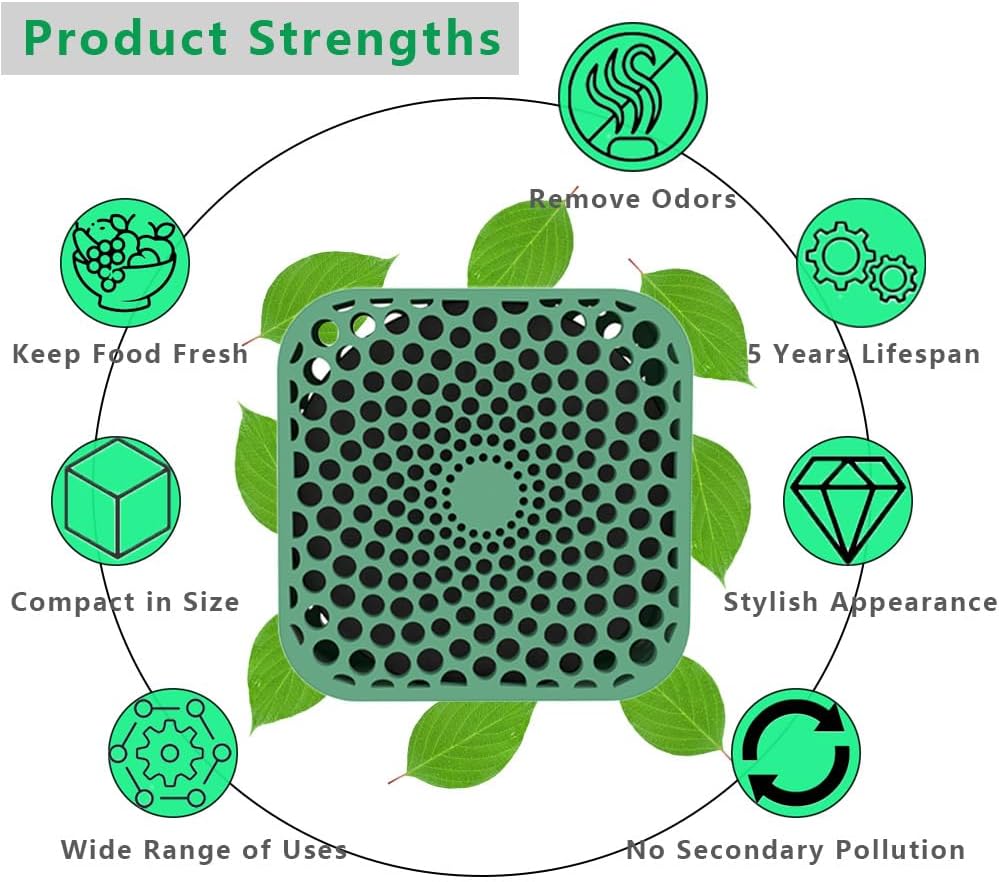 - Difficult to be Broken: The refrigerator deodorizer adopts advanced design and assembly technologies, making the outer shell sturdy and not easy to break and reducing the possibility of the product becoming unusable due to breakage.