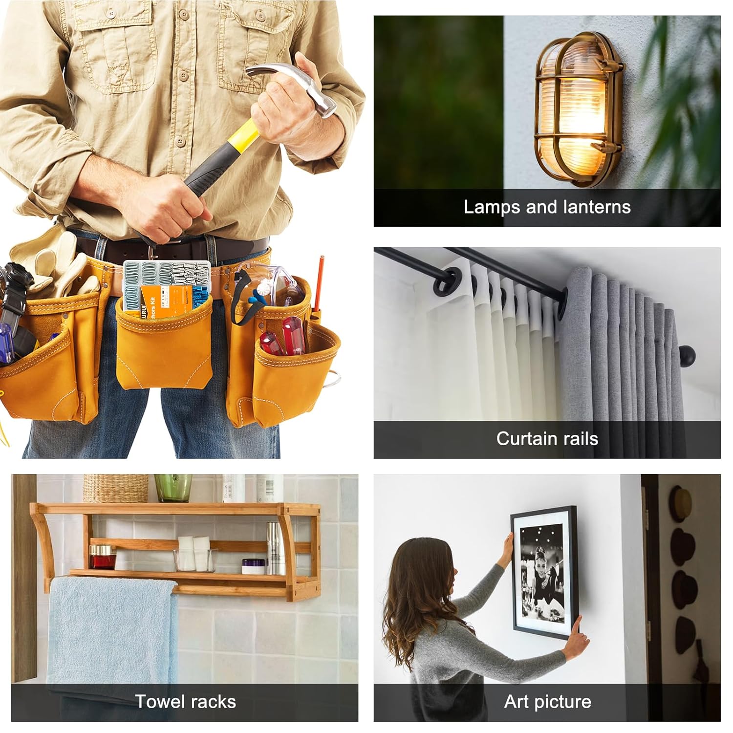 - SUITABLE FOR MULTIPLE WALL TYPES – Whether you're working with brick walls, concrete walls, dry walls, and wooden walls, this set provides a strong and secure fastening solution. The ribbed wall anchors expand for a tight grip, preventing rotation and enhancing stability. Perfect for mounting shelves, curtain rods, picture frames, art, mirrors, and light fixtures, this set ensures a hassle-free experience on different wall surfaces.