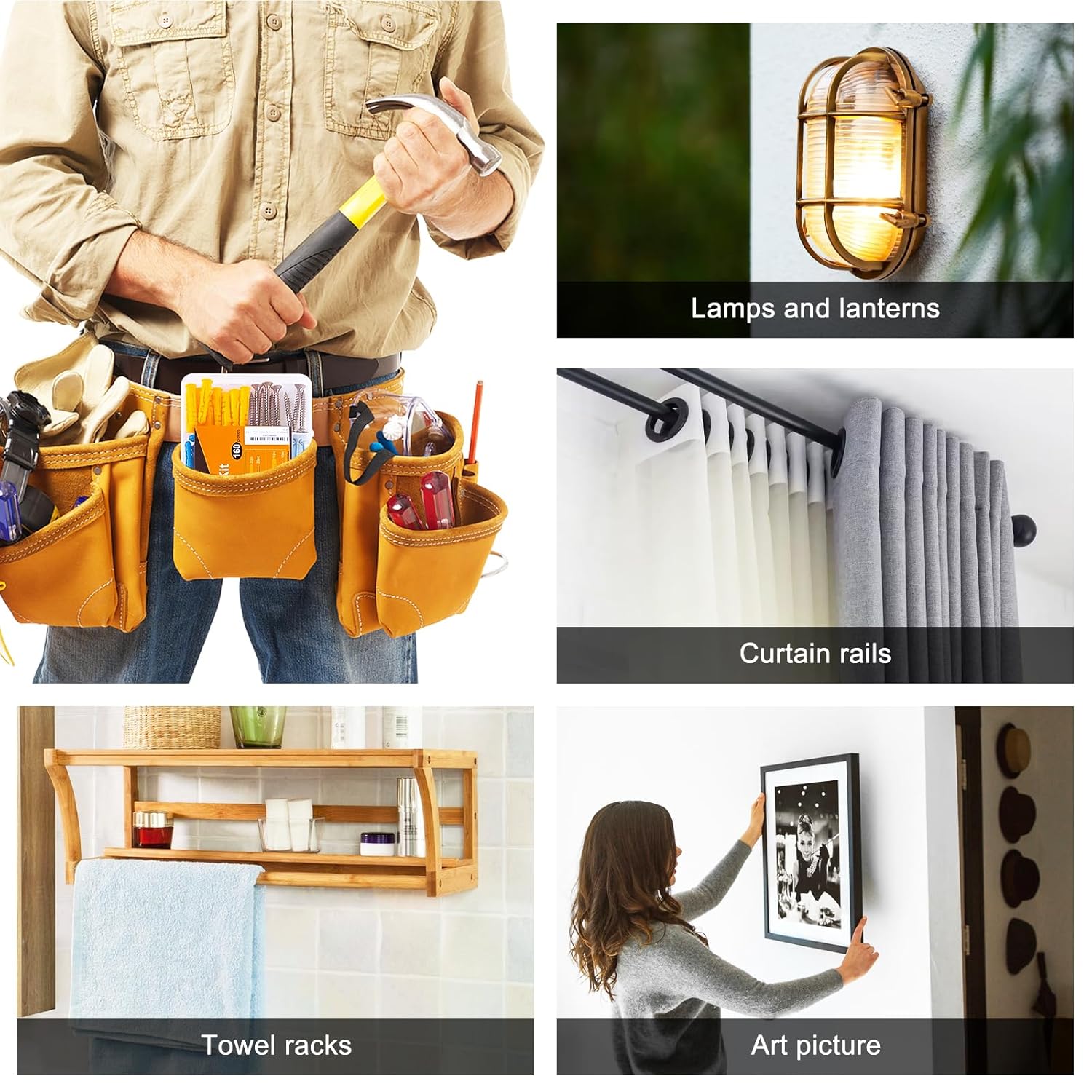 - SUITABLE FOR MULTIPLE WALL TYPES – Whether you're working with brick walls, concrete walls, dry walls, and wooden walls, this set provides a strong and secure fastening solution. The ribbed wall anchors expand for a tight grip, preventing rotation and enhancing stability. Perfect for mounting shelves, curtain rods, picture frames, wall art decor, mirrors, and light fixtures, this set ensures a hassle-free experience on different wall surfaces.