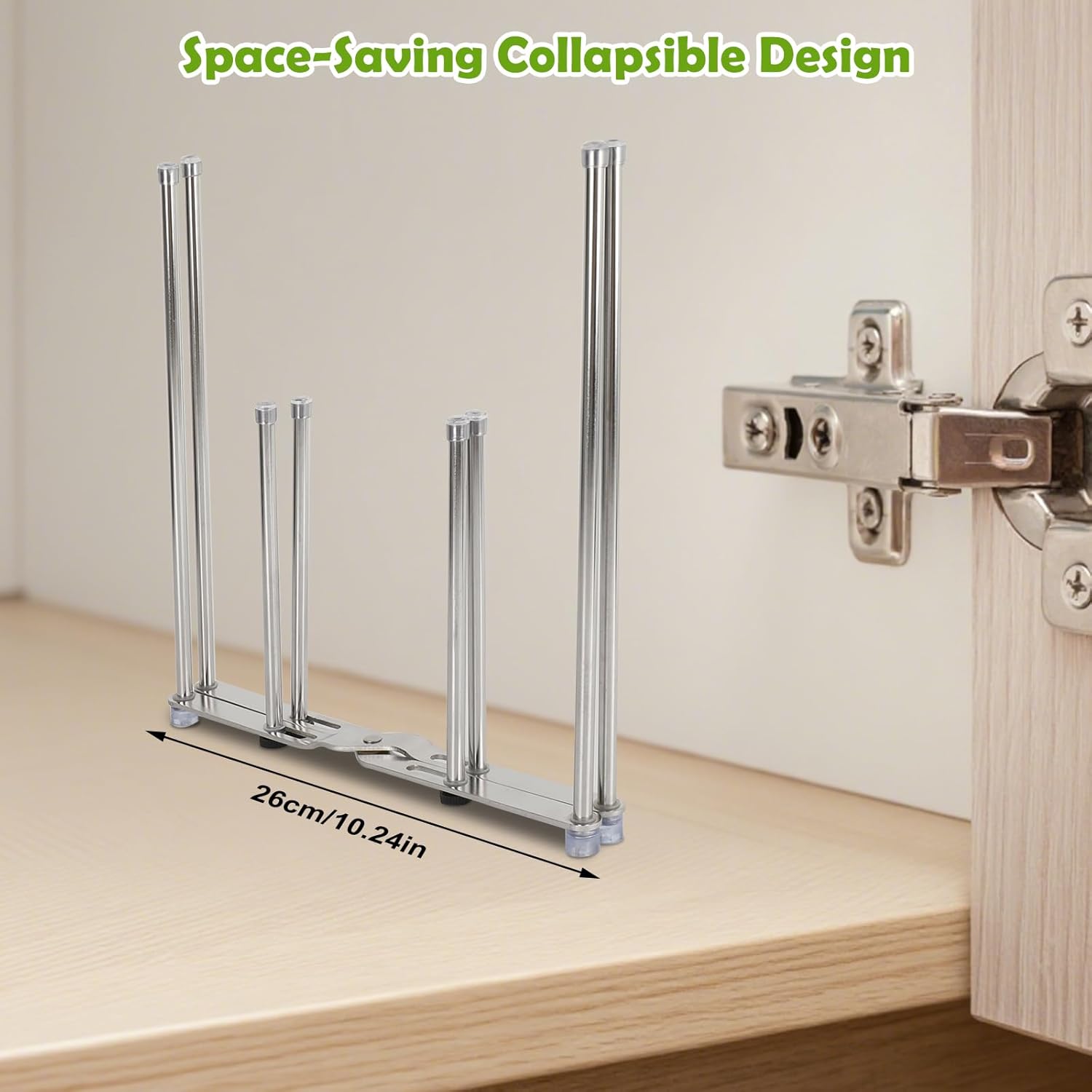 - 【Anti Scratch & Anti Tip Design】The plastic bag drying rack 8 stainless steel posts feature securely bonded silicone covers on top to protect dishware from scratches, while the base is equipped with 4 non-slip plastic pads that prevent sliding and tipping. Tip:If the column becomes loose after prolonged use, it can also be easily tightened manually