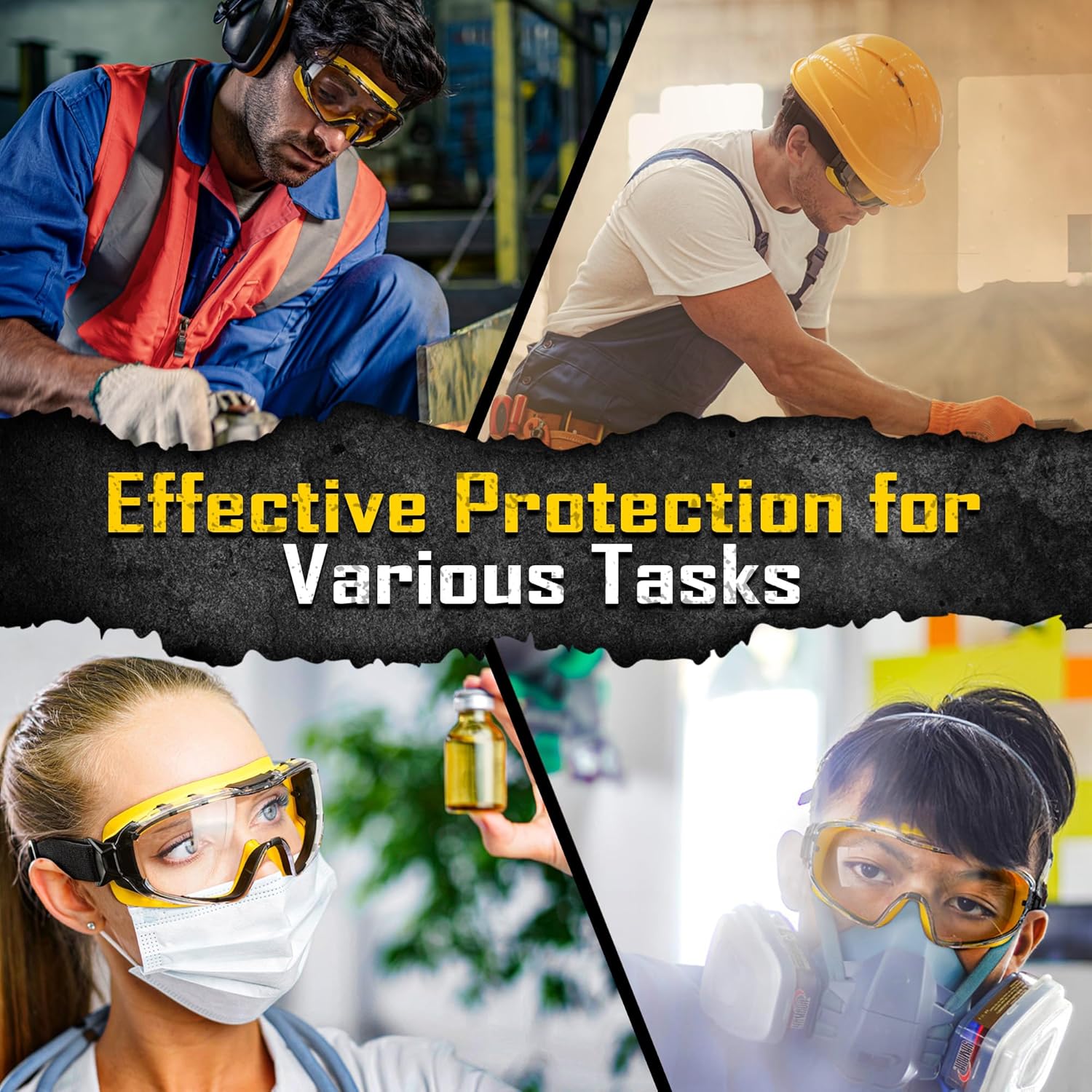 - [Adjustable Headband & Over-Glasses Design]: The adjustable headband allows for a perfect fit on various head sizes. These goggles are designed to be worn over prescription glasses, making them an excellent choice for those who need to protect both their eyes and eyewear. Ideal for use in classrooms, laboratories, homes, workplaces, and even during outdoor activities in dusty conditions.