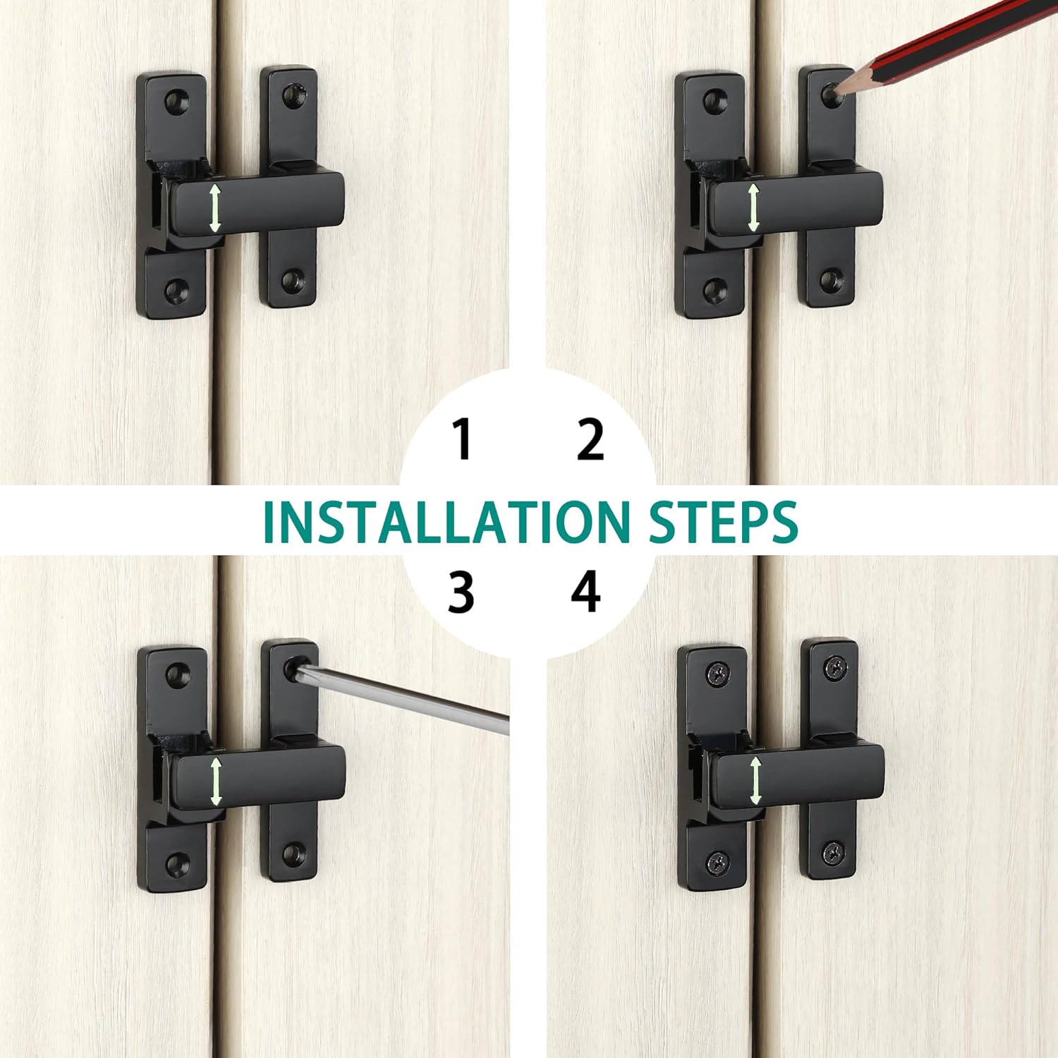 90/180 Degree Flip Latch Gate Latch, Heavy Duty Black Safety Door Lock Enhanced Security Flip Latch Lock Hardware for Interior Door Front Door Barn Garden Fence Window Bathroom Cabinet