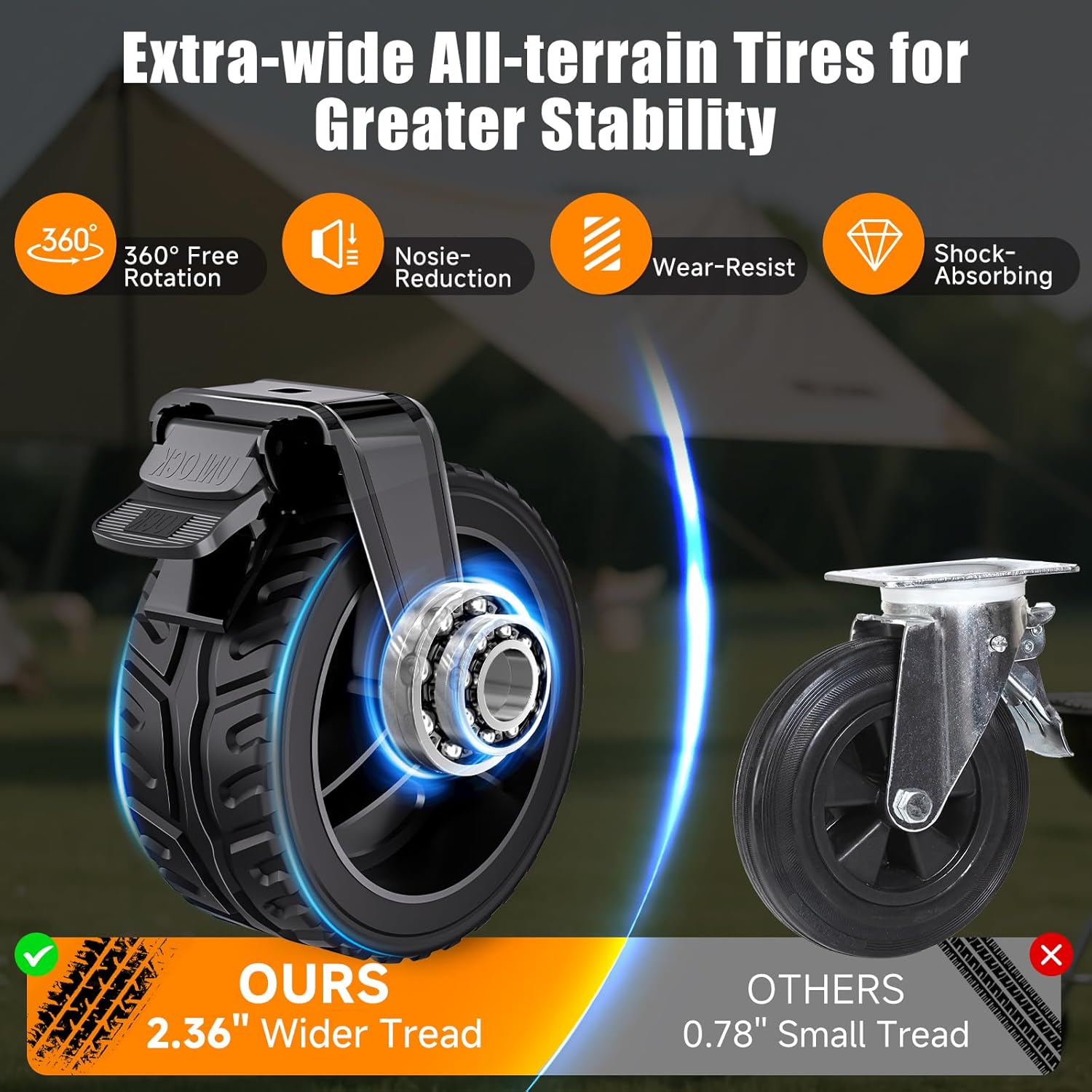 - 【Go Anywhere Wheels】Navigate any terrain with our 6" diameter, 3" wide tread wheels. High-quality construction with built-in bearings ensures easy pulling with minimal effort. Anti-slip rubber strips enhance traction and reduce vibrations, while integrated brakes provide reliable stopping power. From beaches to gravel roads, enjoy a smooth, comfortable ride every time. Note: collapsible wagon are not suitable for soft sand.