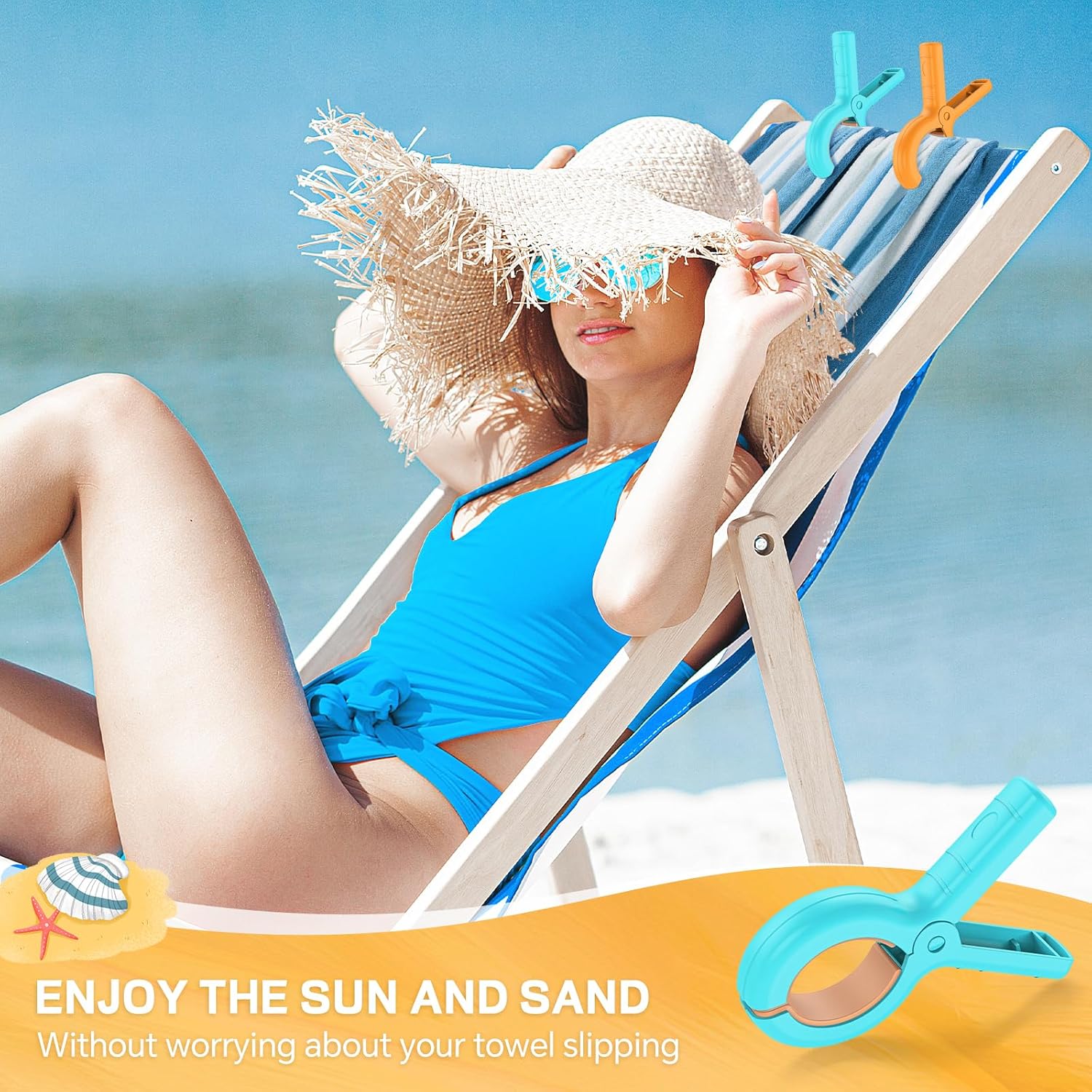 - 【Multi-purpose clips】: This beach towel clip has the advantages of long life, bright colors and grabbing power, so it can be used in a variety of scenarios, not only suitable for the beach but also handy for camping, tablecloth clipping, and hanging clothes. Whether you're on a cruise, by the pool, or having an outdoor picnic, our beach chair towel clips are practical tools for various occasions.Plastic clothespins are sturdy and do a great job holding towel, clothes, blankets to the clothesline, even on windy days.