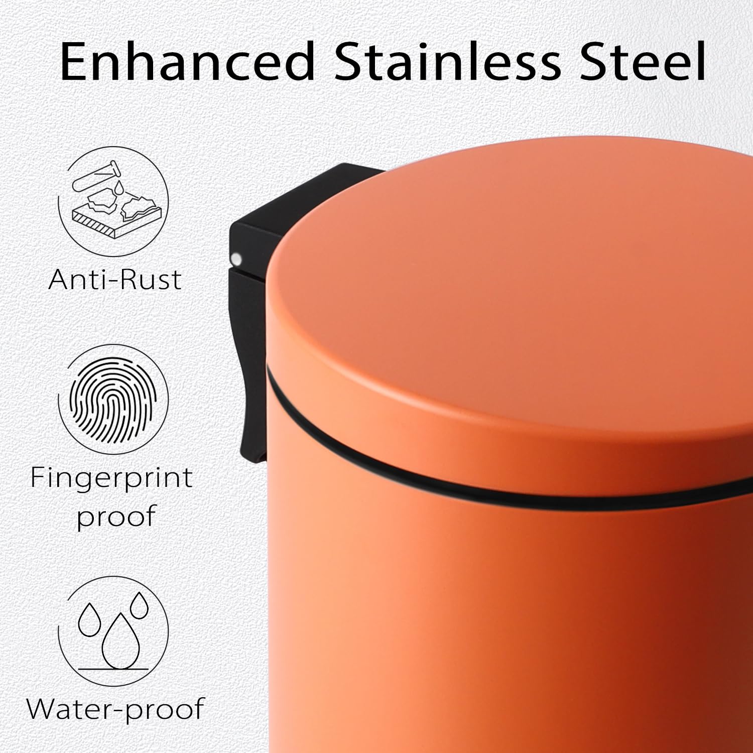 TIPGO Small Trash Can with Lid Soft Close, 4.5 Liters / 1.2 Gallon Bathroom Garbage Can, Mini Step Trash Bin, Stainless Steel Wastebasket for Bathroom, Bedroom, Office (Orange)