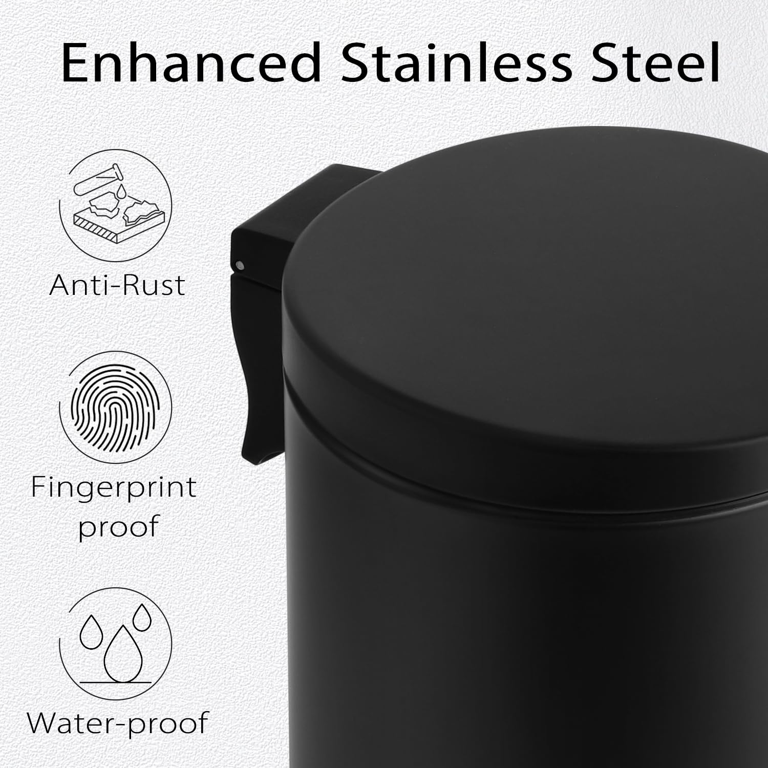 TIPGO 1.2 Gallon Small Black Trash Can, 4.5 Liters Bathroom Garbage Can with lid, Mini Step Trash Bin, Stainless Steel Wastebasket for Bathroom, Bedroom, Office (Matte Black)