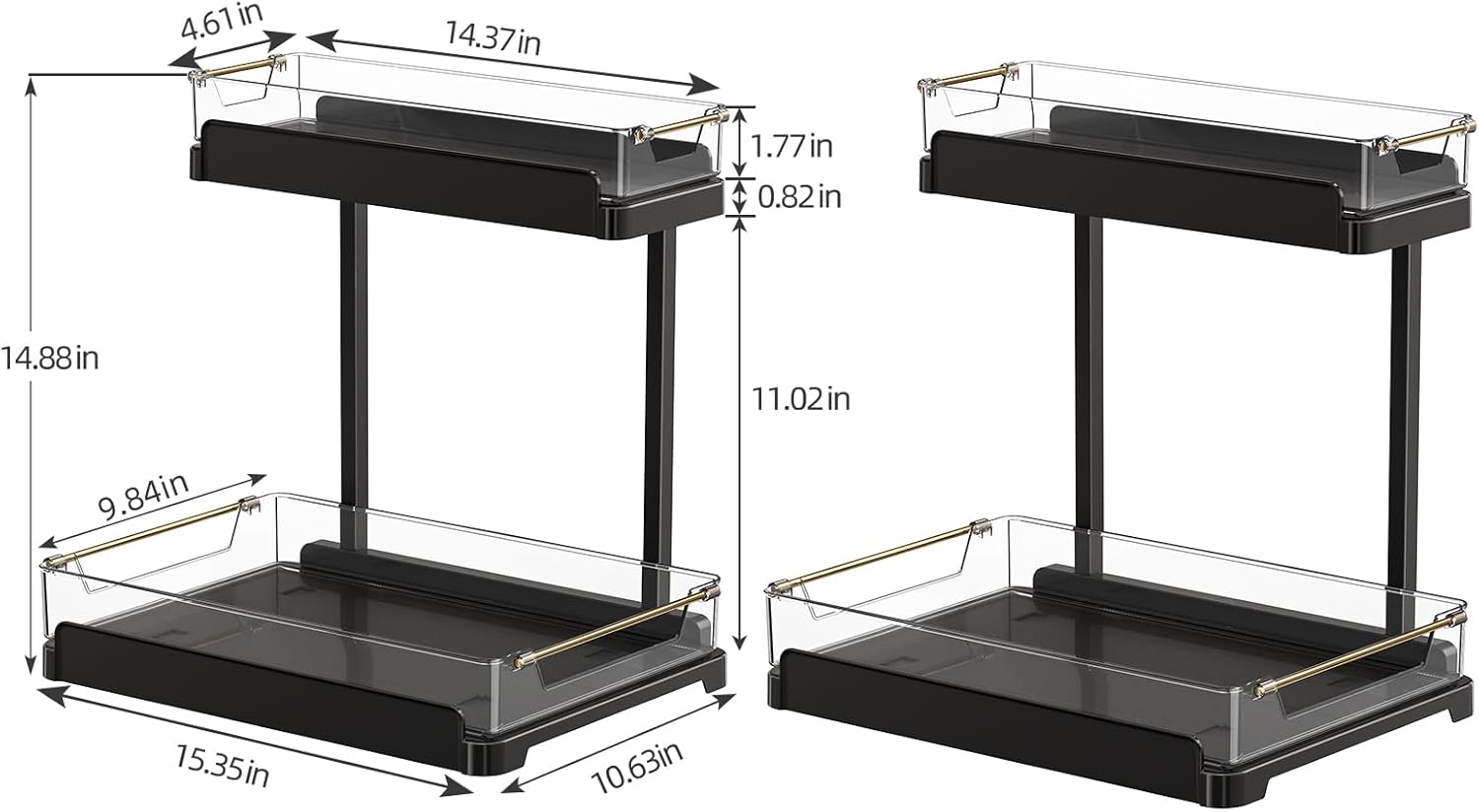 heart & home 2-Pack Under Sink Storage Organizer for Kitchen & Bathroom Cabinets with Removable Washable Tray, Tool-Free Assembly – Multi-Purpose for Vanity, Laundry & Countertop, Black