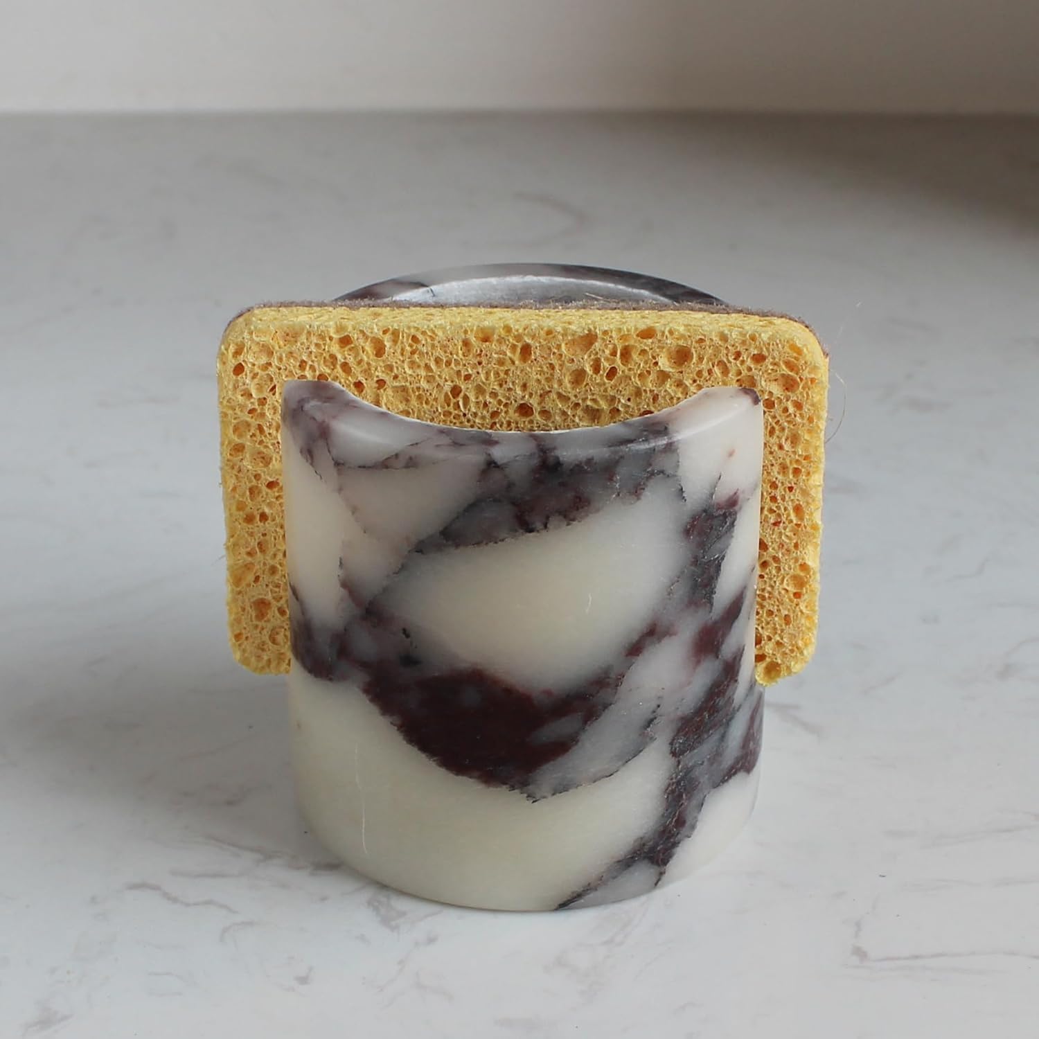 Natural Calacatta Viola Marble Sponge Holder for Kitchen Counter, Drying Rack, Sponge Caddy for Sink Organizer