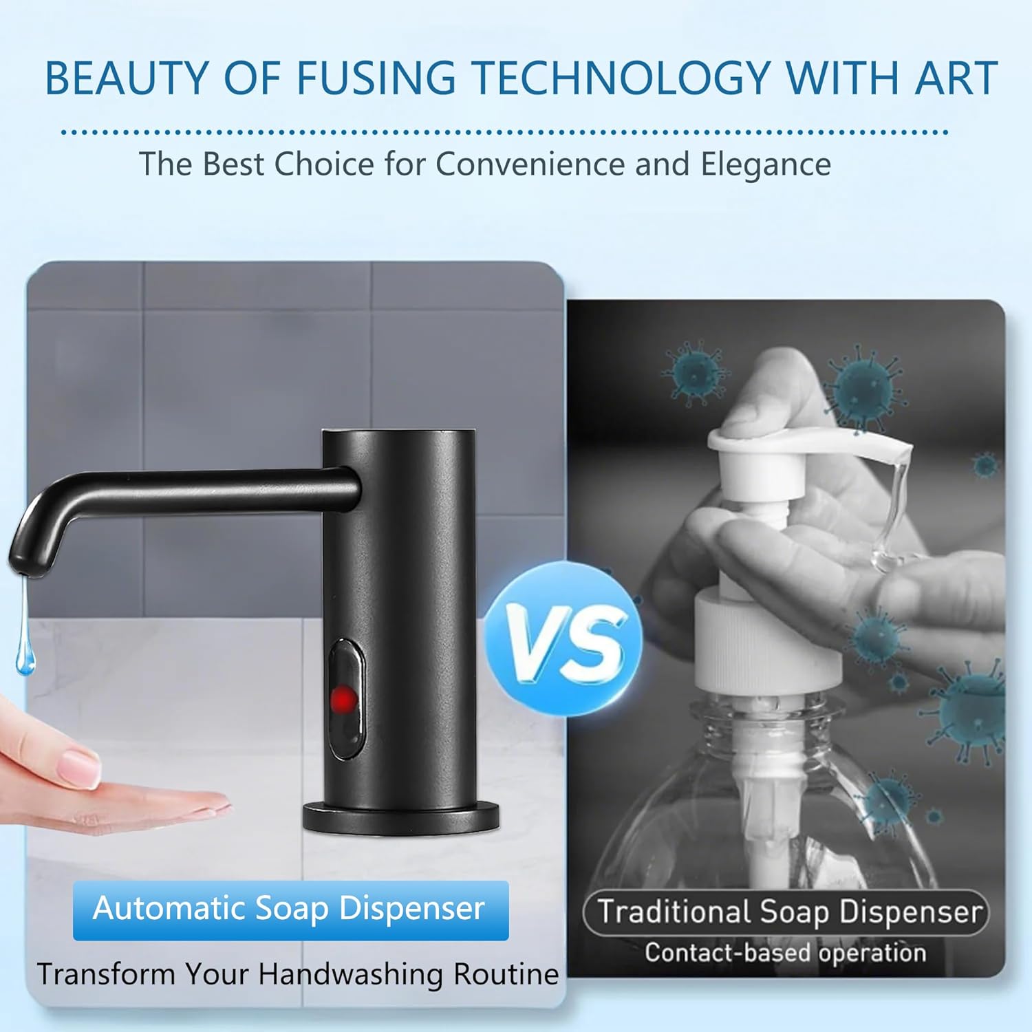 - Automatic Soap Dispenser:Touchless Soap Dispenser has a Highly Sensitive Infrared Sensor.What you need to do is put your hands under the sensing area and the intelligent soap dispenser will automatically release soap.You don't need to touch the soap dispenser, effectively avoid cross infection and enjoy a healthy life.