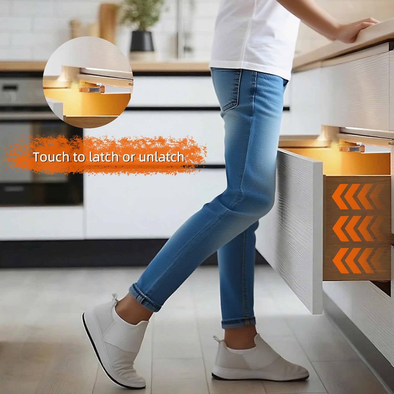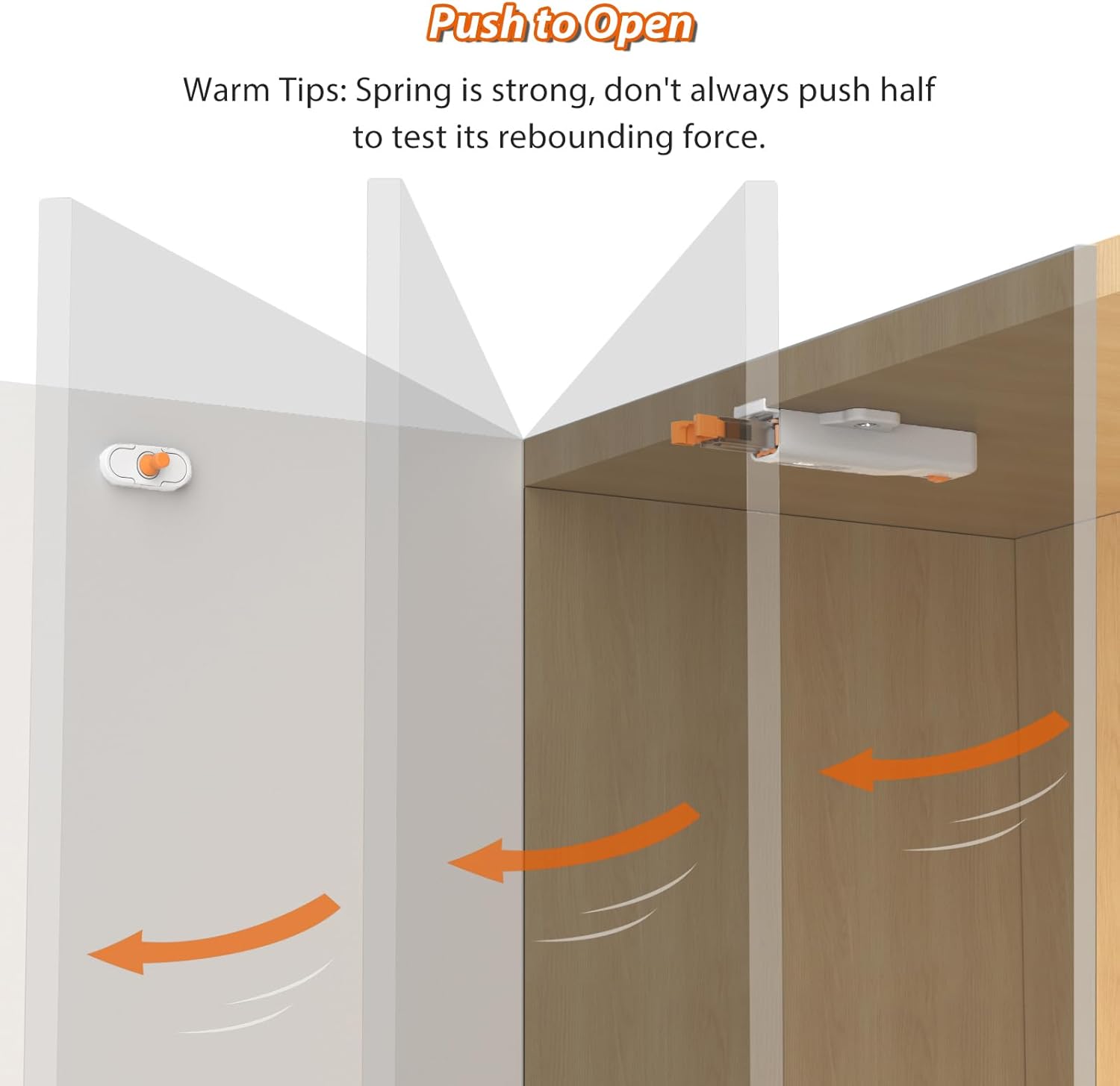 - Convenient to use: Think about how many times you've had your hands full and needed quick access to open the cabinet door to take things? Effortlessly open and close your cabinets with this heavy duty cabinet push latch, simply press the door to latch or unlatch, eliminating the need for handles or knobs. Ideal for cabinet doors and drawers without handles in home, RV, boat, and any other places.