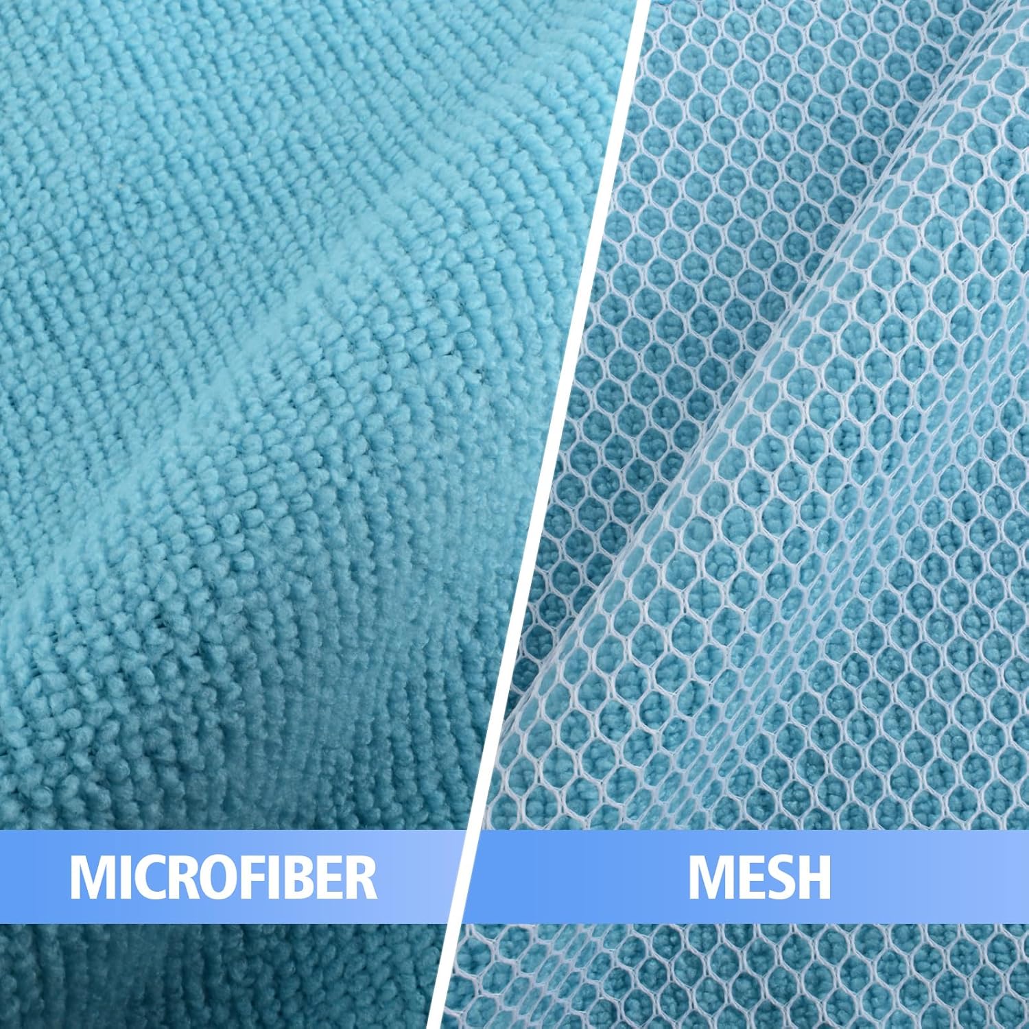 - DISH RAGS FOR KITCHEN CLEANING WITH POLY SCOUR SCRUBBING SIDE: One side is microfiber and the other side is mesh. The microfiber side works well at getting finger spots off the stainless steel appliances and the glass front of fridge or stove, microwave; the scrubby side is good for cleaning stuck on food without having to grab your scraper and does not scratch delicate surfaces either