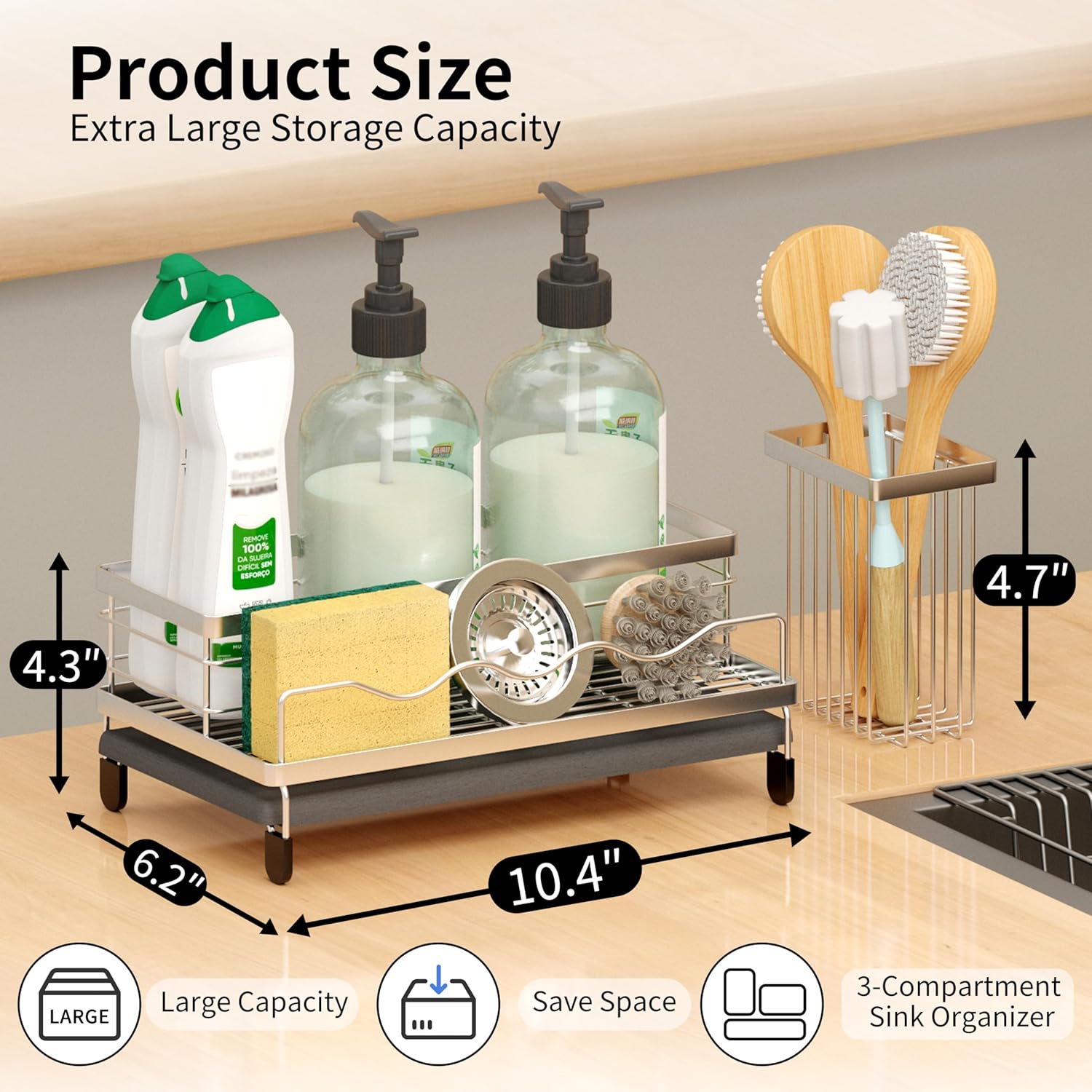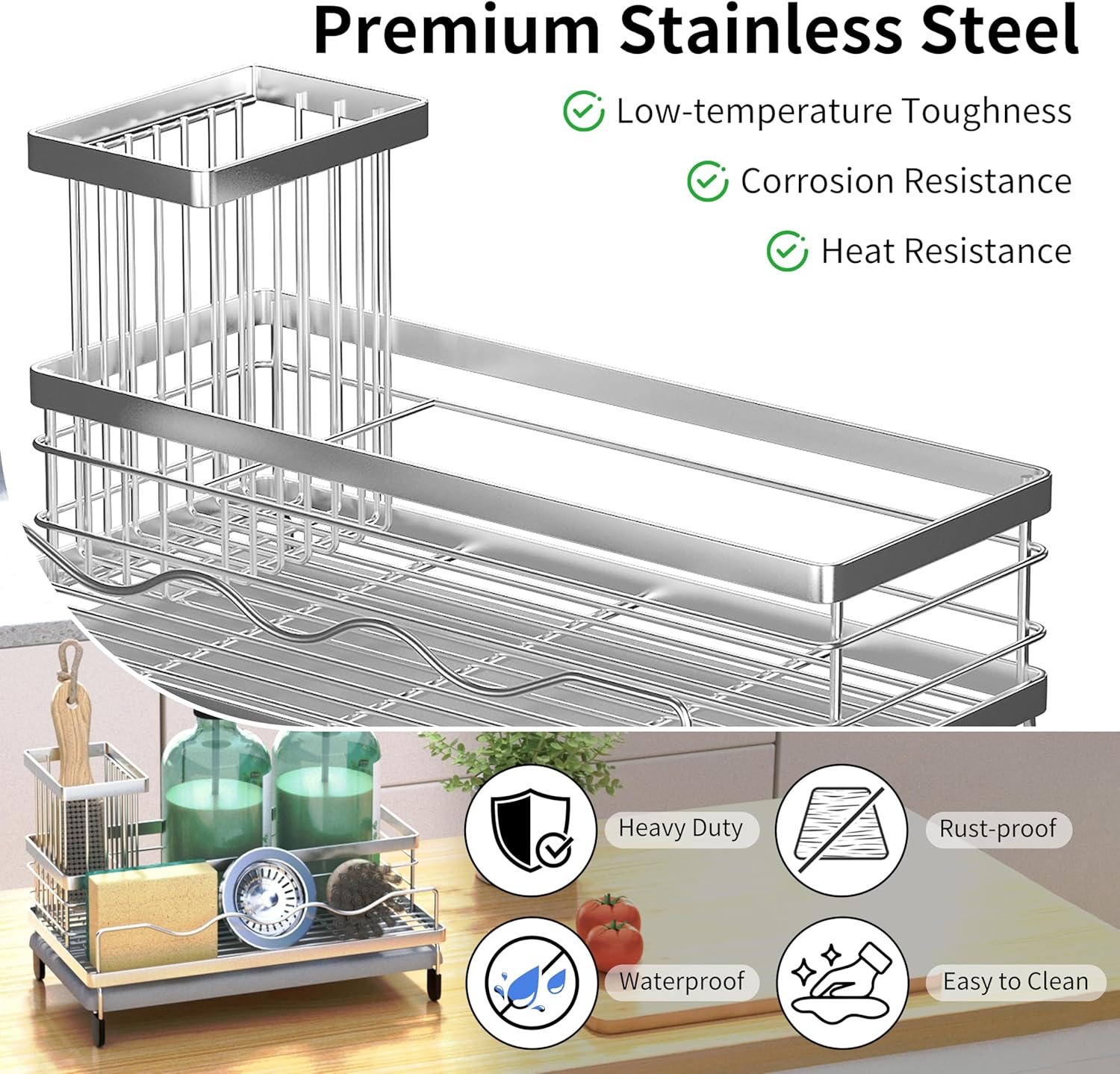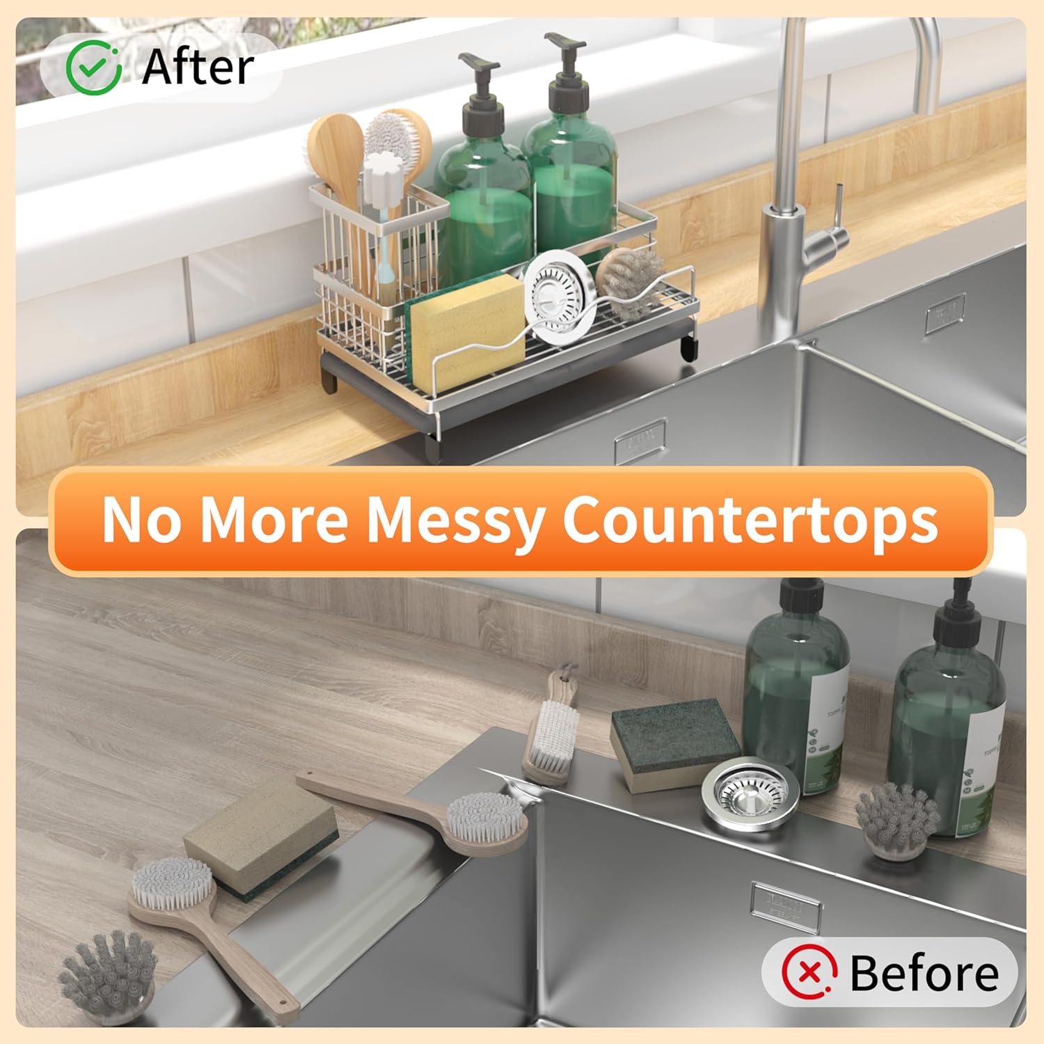 - 【Premium Stainless Steel】- Our kitchen sink organizer made from Premium stainless steel with a protective coating. this kitchen sink caddy resists rust and damage, ensuring long-term durability in wet environments.