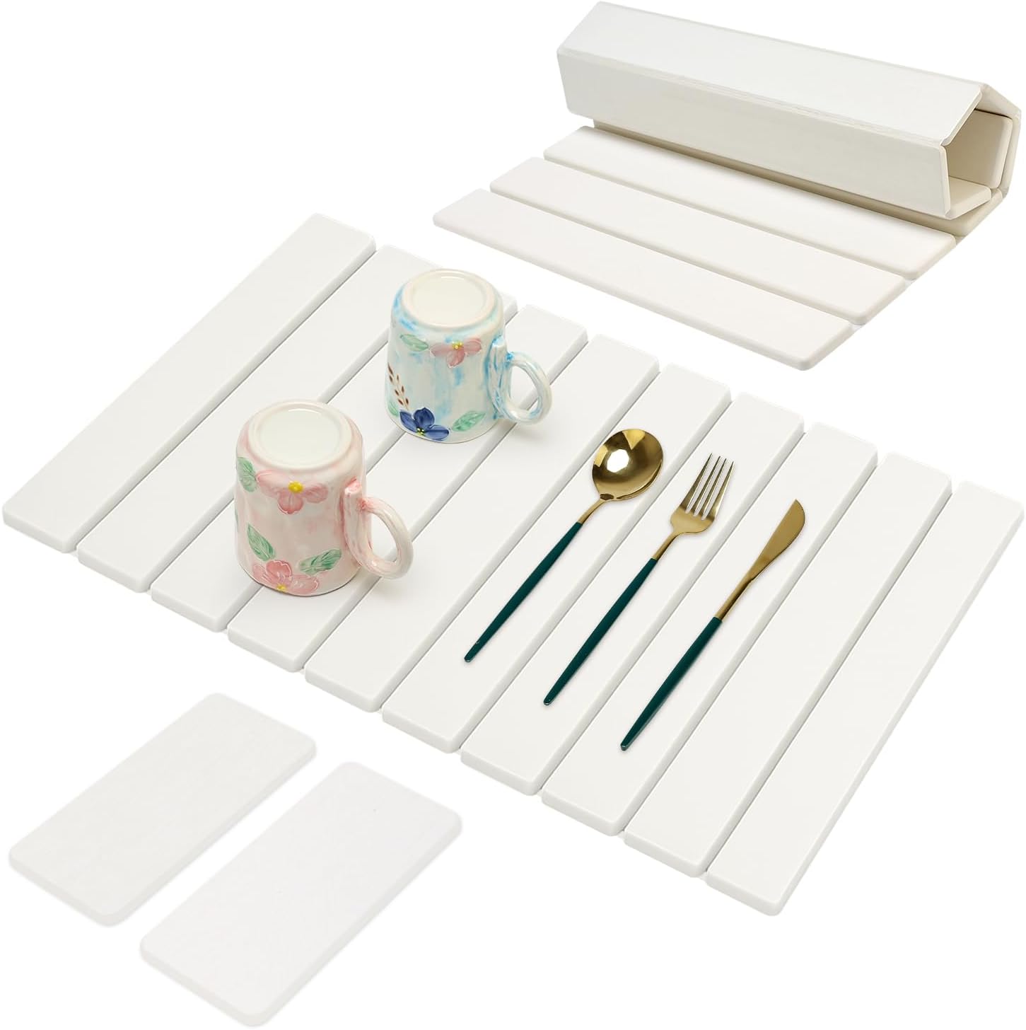 - Collapsible Design: The foldable dish drying mat can be rolled up to maximize counter space when not in use and can accommodate a lot of dishes when fully unfolded. Its unique collapsible design saves a lot space, making it ideal for different space needs.