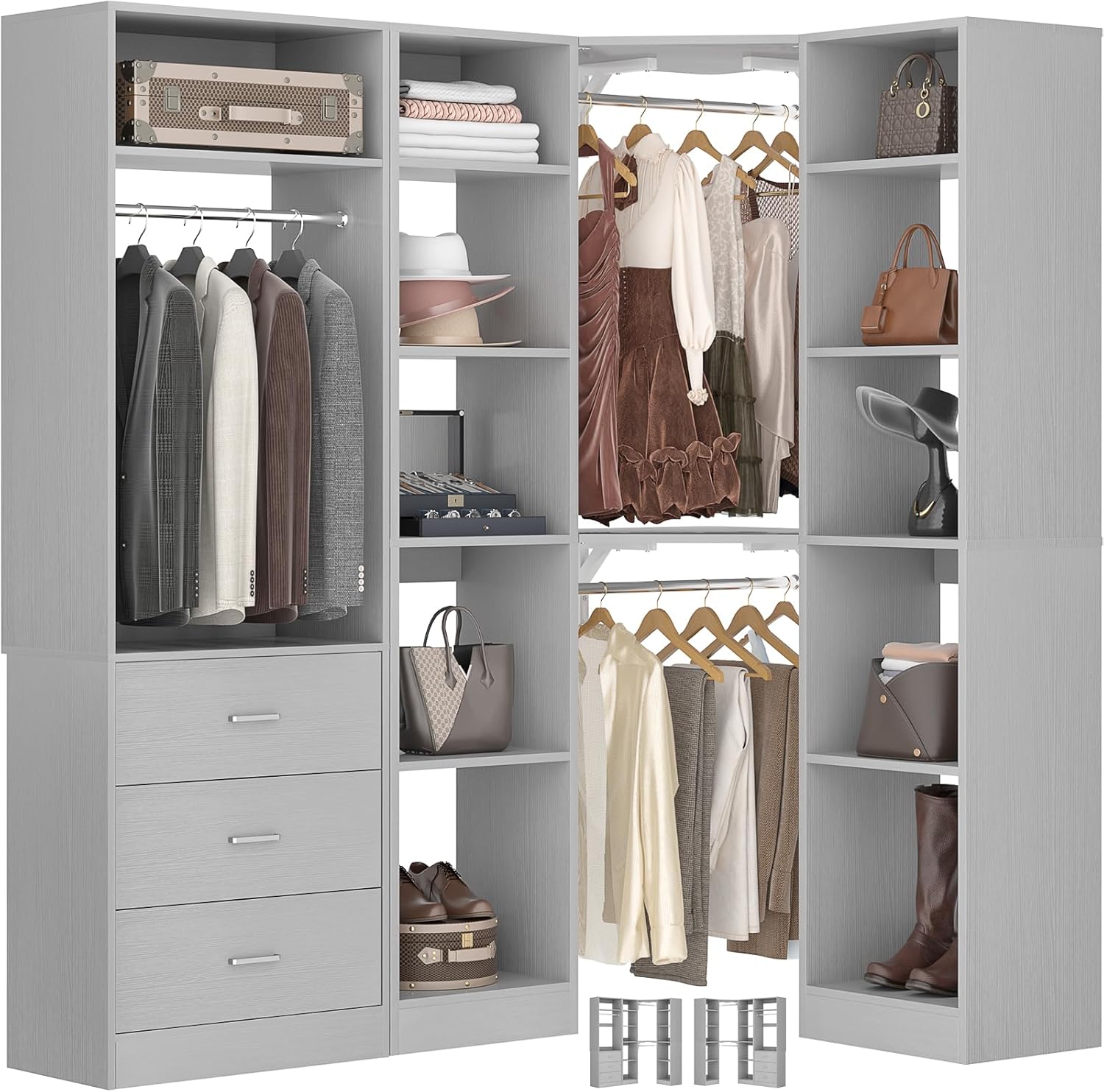 - DIY Customize Your Dream Walk-in Closet: Our closet systems put the design in your hands, allowing you to DIY to your liking. You have the flexibility to mix and match different modules based on room size, personal style and storage requirements to create an dreamful L- or U-shaped walk-in closet.
