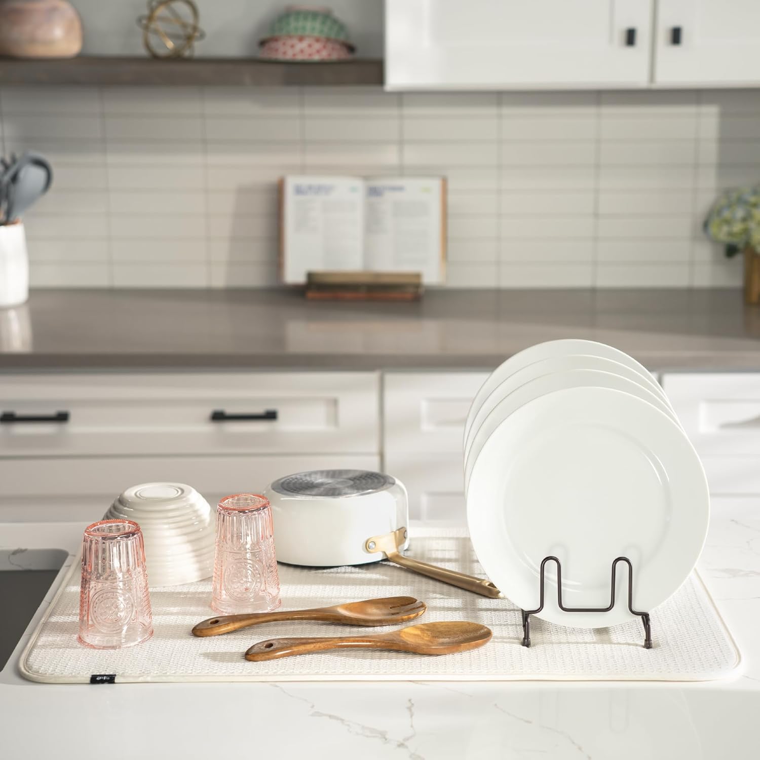 • Dish drying mats for kitchen counter are reusable, machine washable, and easy to store for kitchen organization; durable construction will not chip or break like a stone dish drying mat for kitchen