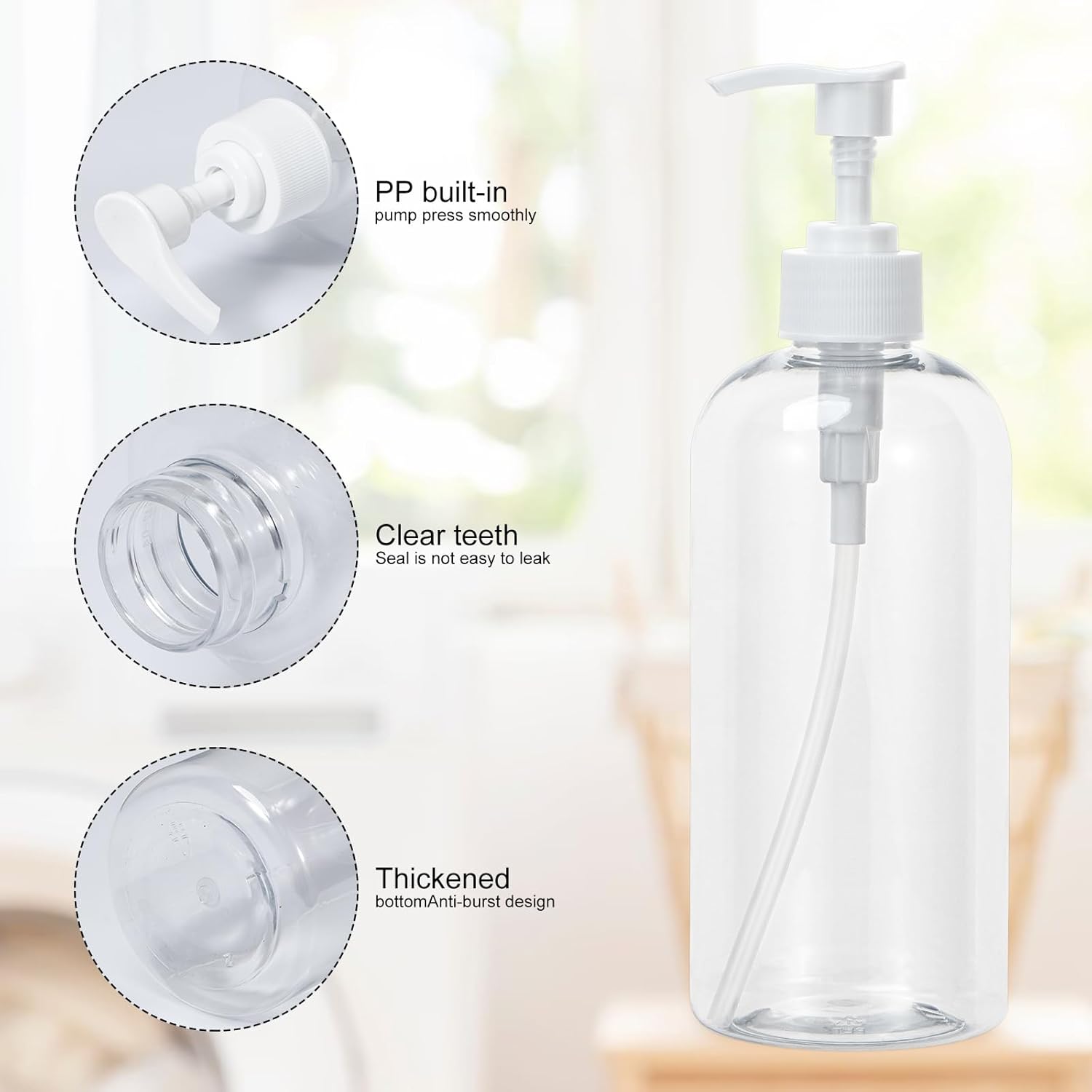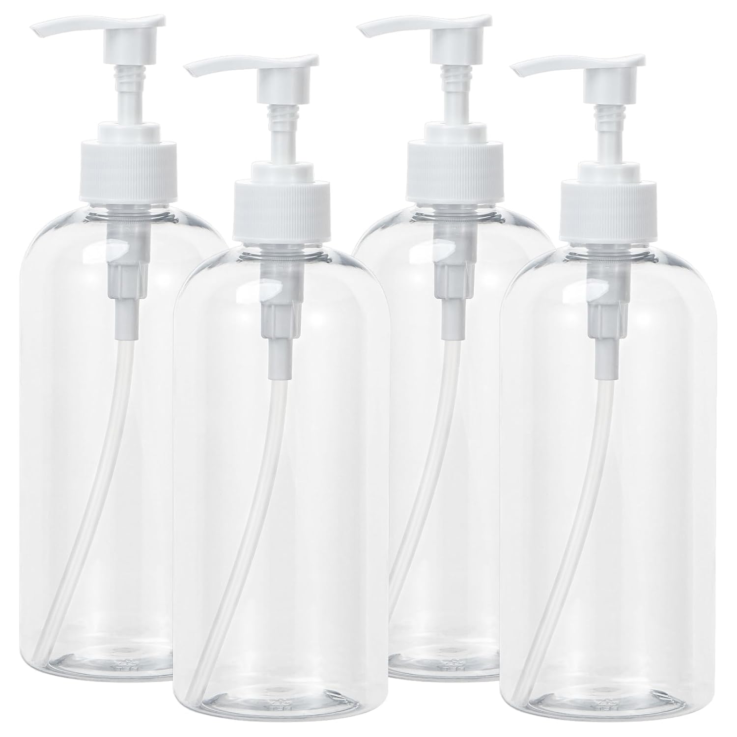 Yebeauty Plastic Pump Bottle, 4 Pack 17oz/500ml Stylish Shampoo Bottles Refillable Hand Soap Dish Soap Dispenser with Press for Massage Oil, Liquid Hand, Clear