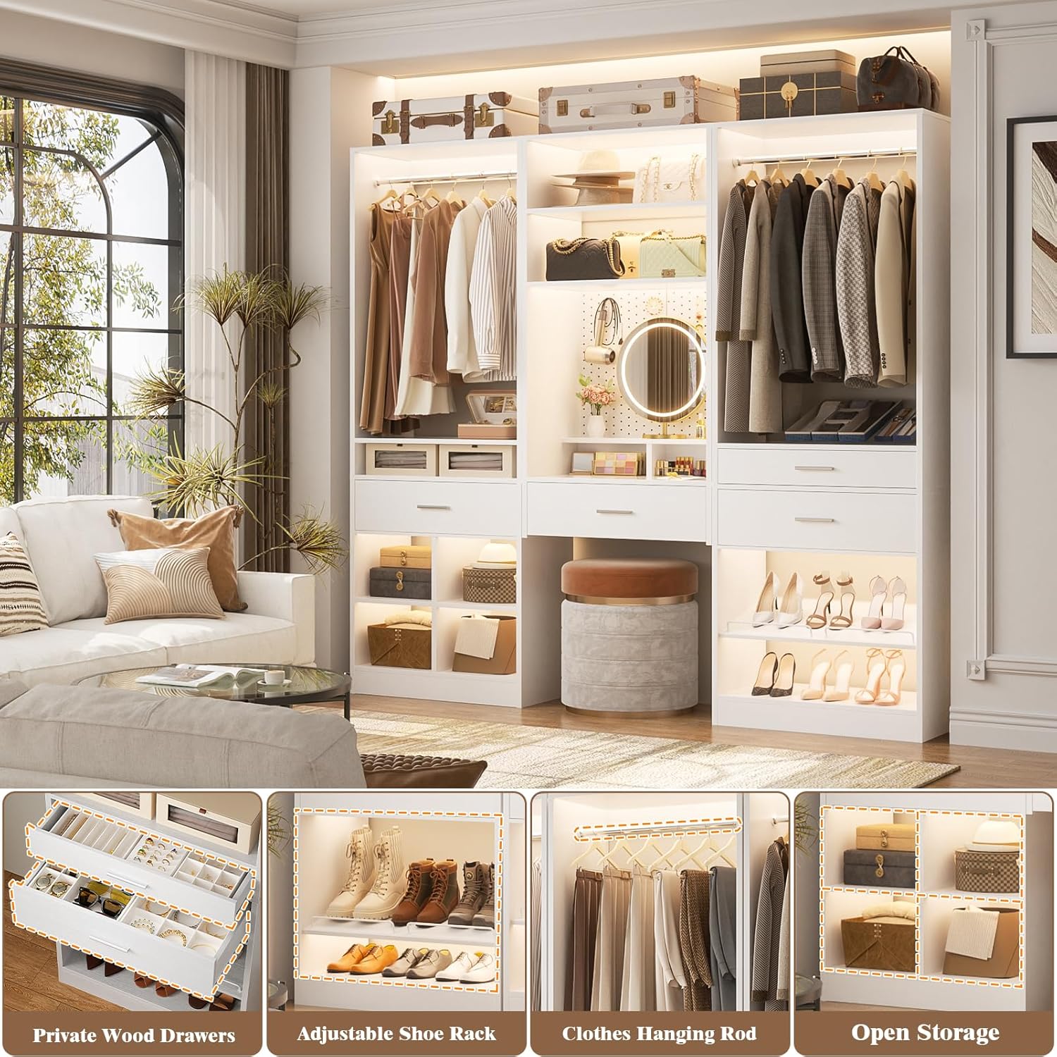 - 【Multi-Functional Closet Upgrade】 Transform cluttered spaces into organized, high-end closets. Use standalone or combined with additional units for a custom storage system. This versatile closet system is perfect for any room—bedroom, living room, kitchen, laundry room, or entryway.