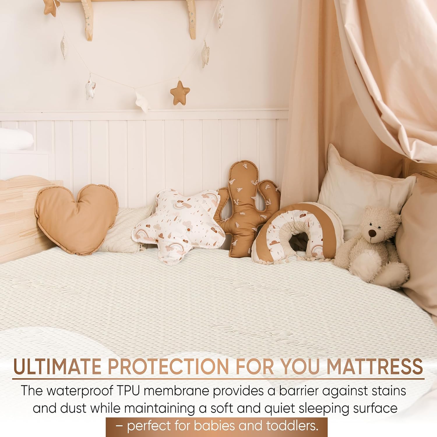 - MATTRESS PROTECTION: Features a waterproof TPU layer to guard against spills, leaks, and accidents. Designed for crib mattresses to offer reliable protection without plastic feel.
