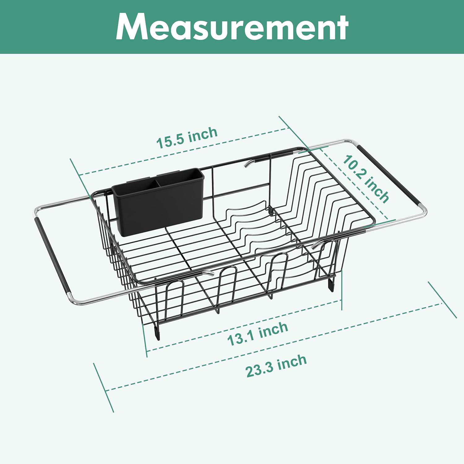 - 📏Two Independent Sliding Rods for Custom Fit: Customize width with dual slide and lock rods. Main frame remains compact while adapting to single, double, farmhouse sinks. Secure expandable dish drying rack stability. The ultimate extendable dish drying rack for 16" to 24" spaces.