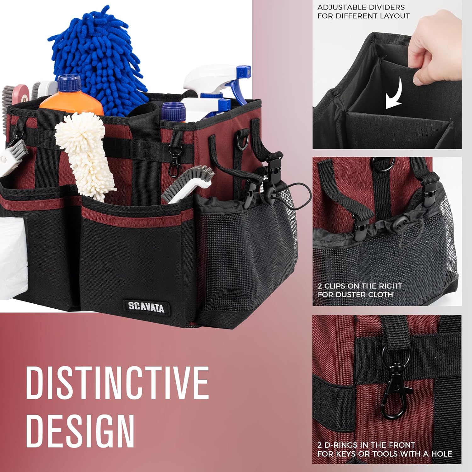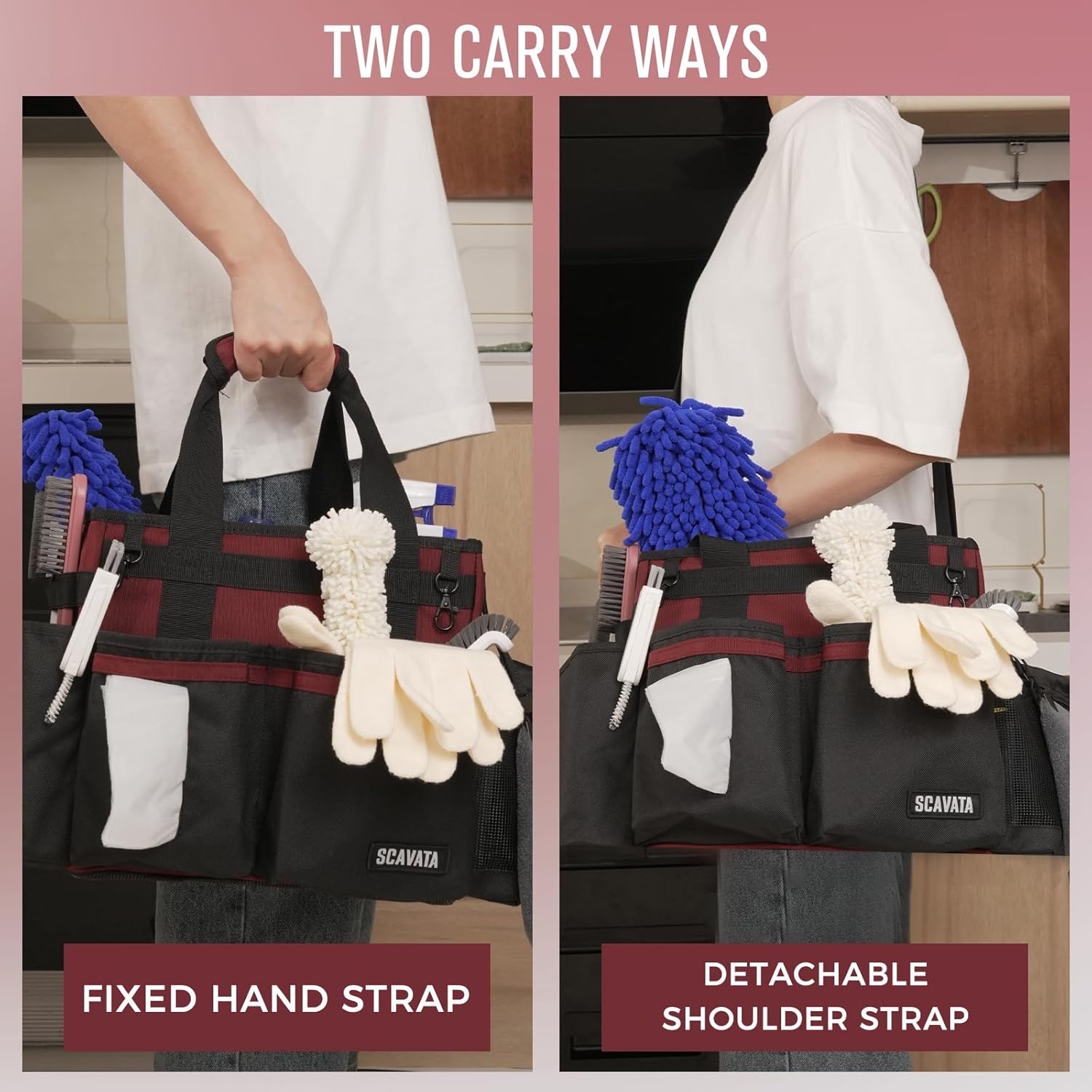 - Compact & Wearable Design: SCAVATA small cleaning caddy measures 9.8 x 11 x 8.3 inches, making it ideal for organizing cleaning essentials without taking up much space. Equipped with a sturdy handle and adjustable shoulder straps, it allows for hands-free mobility, perfect for housekeepers and cleaners working in tight spaces, under sinks, in cars, or on-the-go.