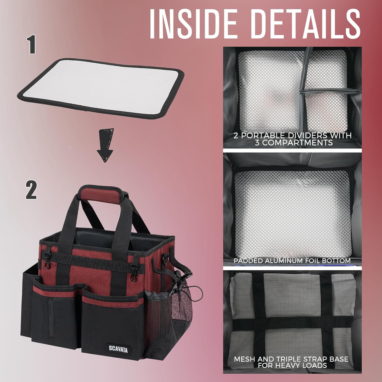 Compact Wearable Cleaning Caddy, Small Cleaning Caddy Supplies Organizer with Handle & Shoulder Straps for Housekeepers, Under Sink & Car Cleaning Tool Organizers Bag (AncoraRed)