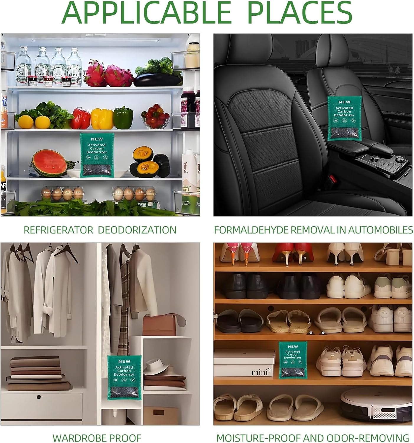 - New type activated charcoal odor absorber:The activated charcoal bag employs new technology, offering a significantly enhanced adsorption capacity of nearly 1 times compared to traditional bamboo charcoal. It is a versatile solution suitable for various applications, including household, pet, automotive and general deodorising needs