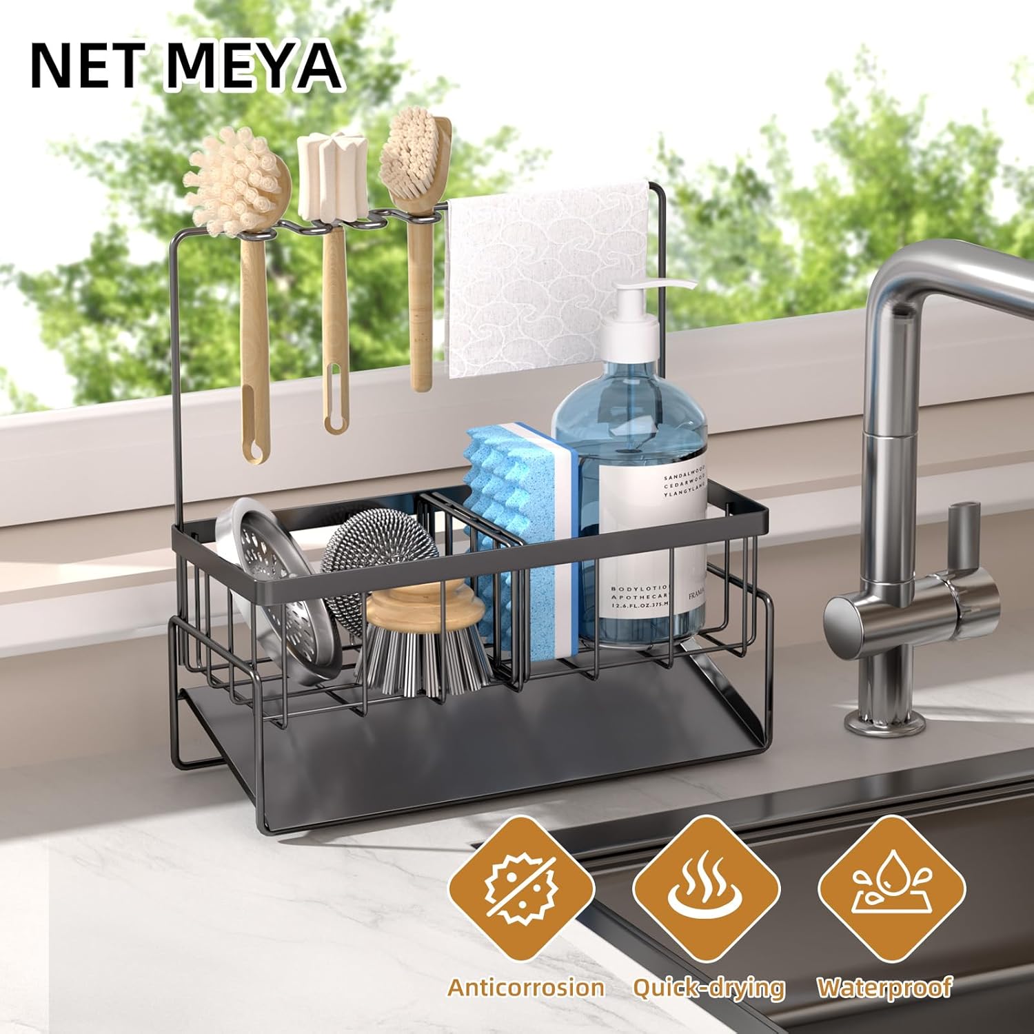- ăSATISFACTION GUARANTEEDăThe NET MEYA stainless steel sink caddy is ready to use upon receipt,no installation required and is widely used on counters or bathrooms,making it a satisfying gift.If you have any questions during use,please contact us in time,We want to provide you with a pleasant shopping experience.