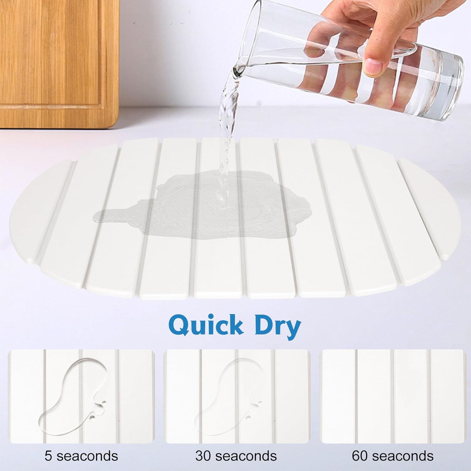 - 【Ultra Absorbent & Quick Drying】: Made from natural diatomaceous earth, it absorbs water instantly and dries quickly, keeping your countertops dry and free from dampness or odors. Perfect for maintaining a clean kitchen or bathroom.