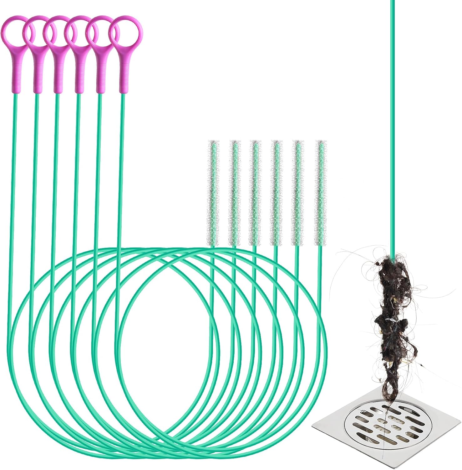 - Multi-Drain Clog Solution for the Whole House:This 6-pack drain hair remover tool set is perfect for common home clogs. It functions as a hair drain clog remover tool, clogged drain solution, and sink clog remover tool—ideal for the toilet auger, shower snake hair drain clog remover tool, sink hair removal tool, and more. A reliable tool set for any household plumbing emergency.