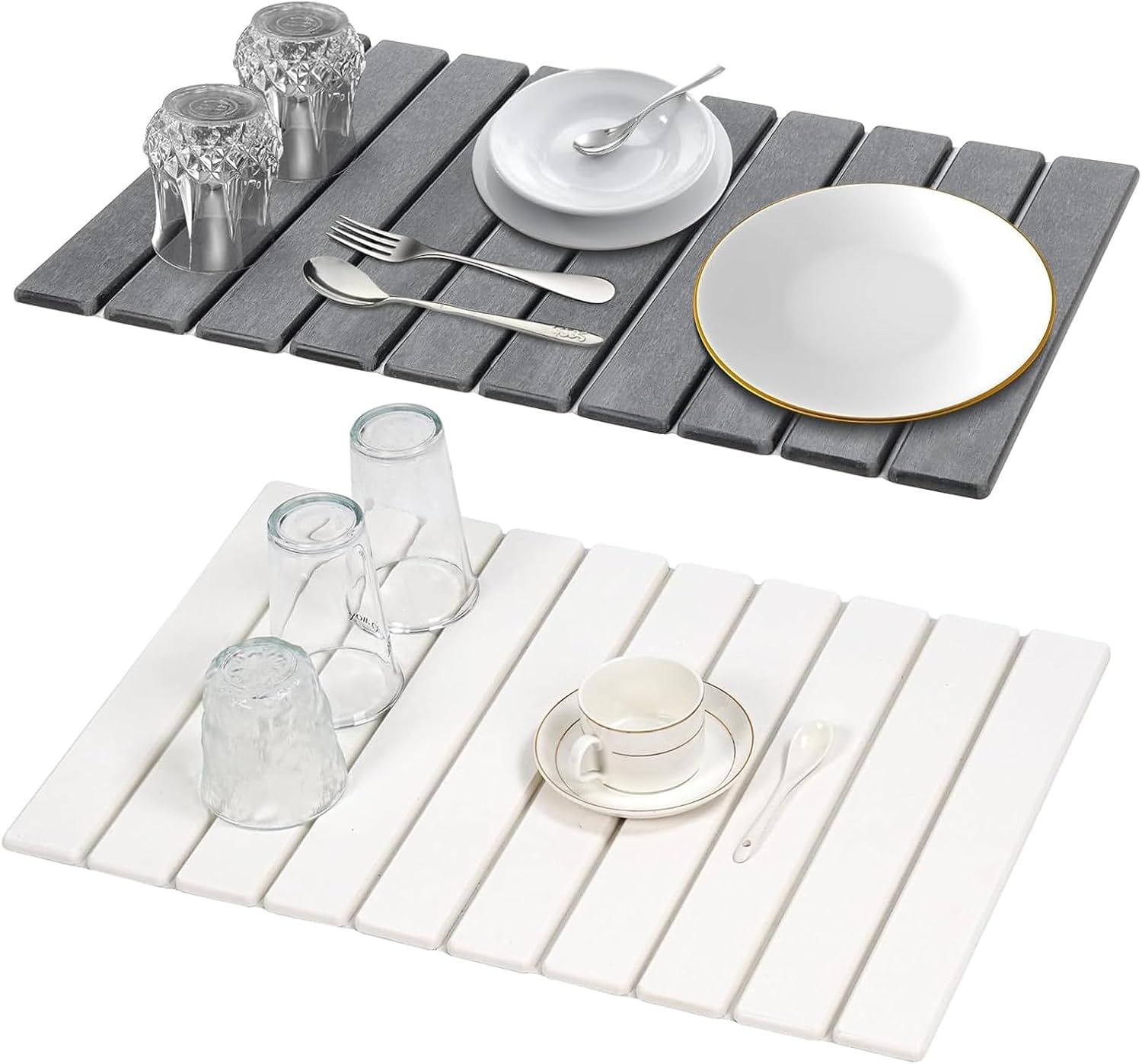 - ·Large Size Non Slip Stable and Practical: large size, fully meet the daily use needs of the family, whether it is placed tableware, or shelving other items, are more than enough. The bottom non-slip mesh greatly enhances stability and prevents the mat from sliding. At the same time, it is equipped with sandpaper, which can be regularly polished and maintained to ensure that the drying pad always maintains strong water absorption, long-term clean as new, and the durability is guaranteed.