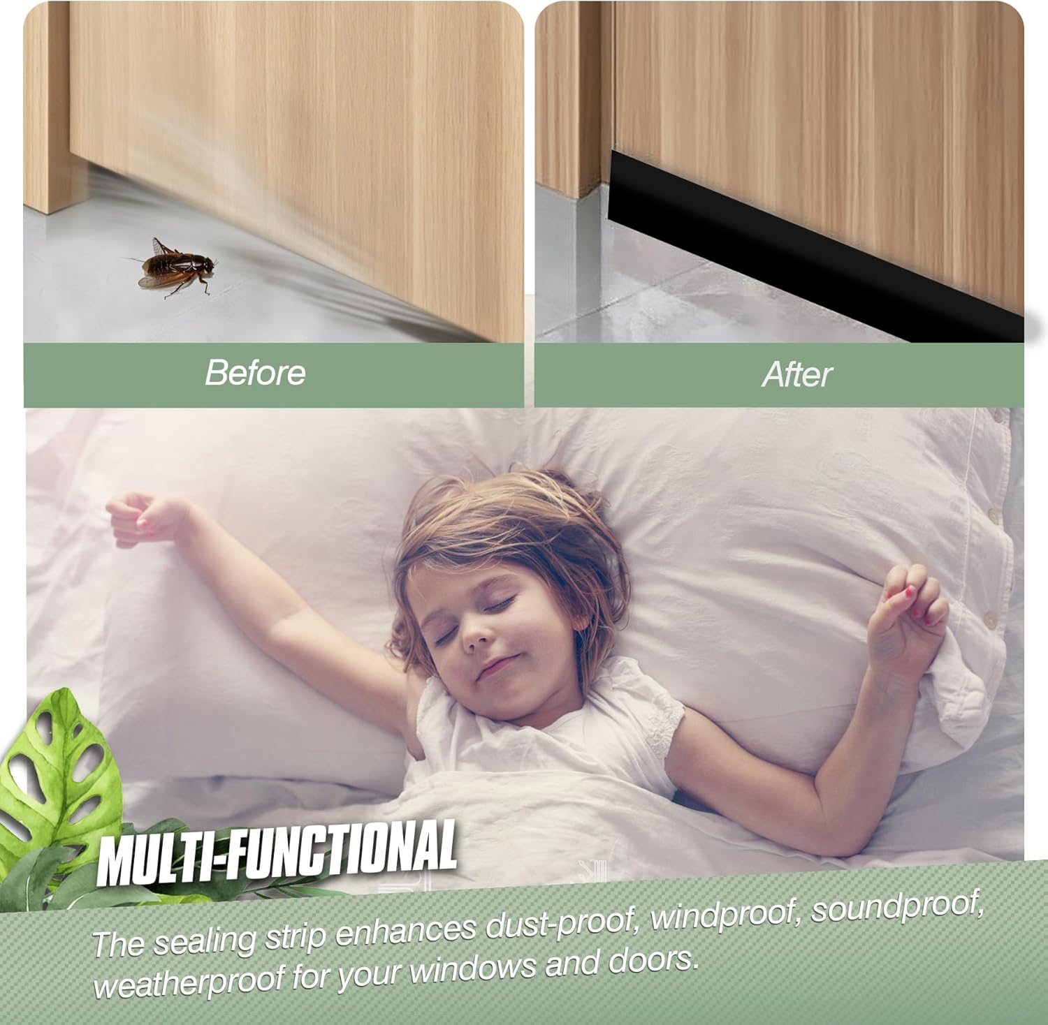 - Strong Adhesive: The door seal strip weather stripping is strong adhesive, not easy to come off, and can provide good adhesion in cold weather. Suitable for most surfaces such as wood, glass, metal, ceramic, fiberglass or plastic