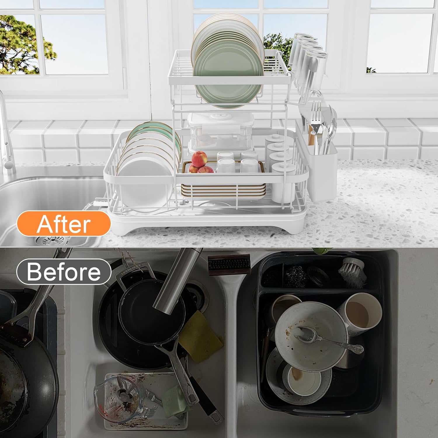 - Superior Quality and Thoughtful Design: The drying rack on the kitchen counter is made of high-strength metal and carefully polished with high-temperature paint .This ensures kitchen organizer beautiful, easy to clean, and durable . All corners have been polished to prevent scratches and damage to your plate.