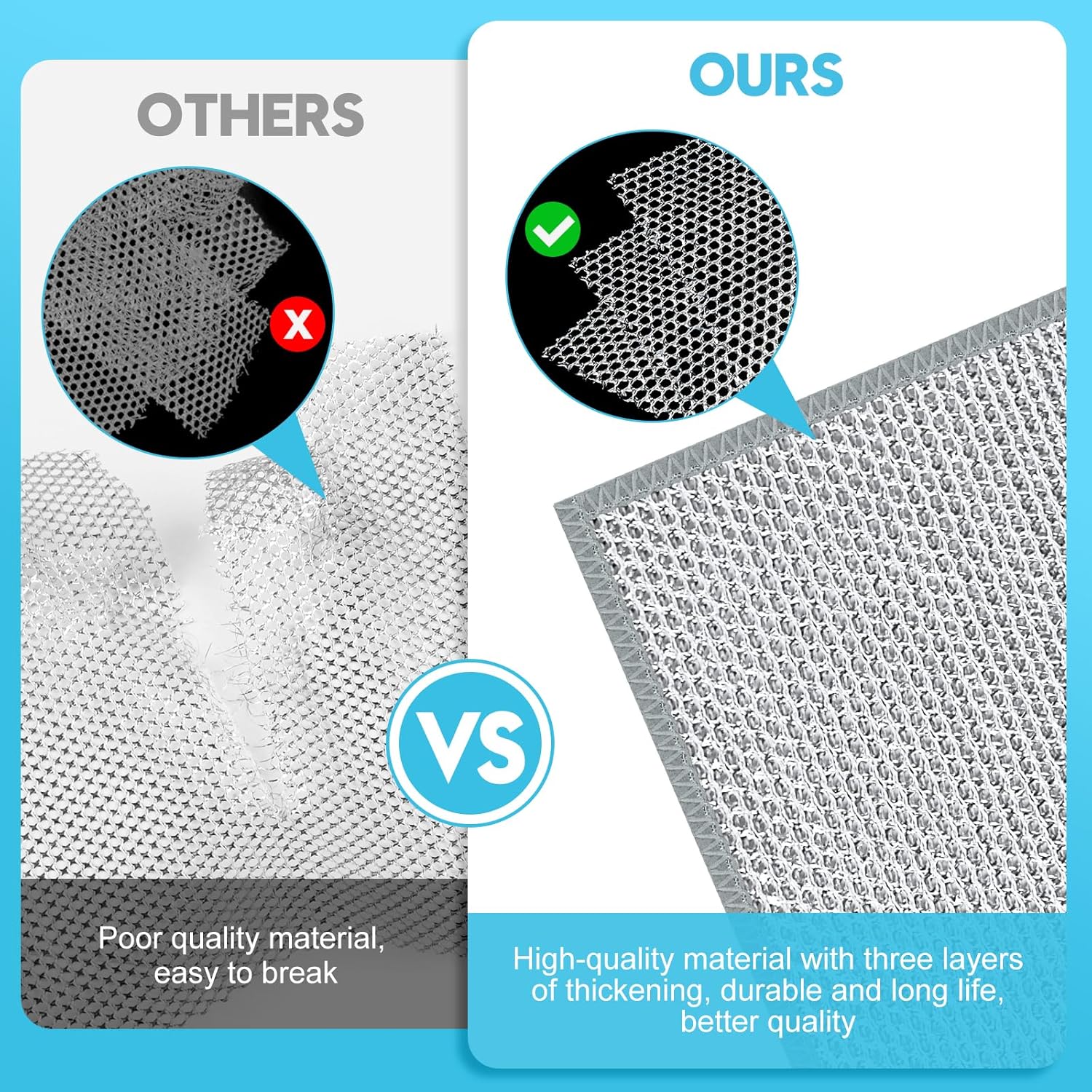 - 【Upgraded Three-Story Structure】Multipurpose non scratch wire dishcloths are made of advanced high-quality materials and precision stitching, and use advanced fiber materials Sew three layers of steel metal dish cloth, Not only does this provide a powerful cleaning power, but it also ensures that they don't scratch or damage unscratched surfaces. Satisfy your cleaning needs.