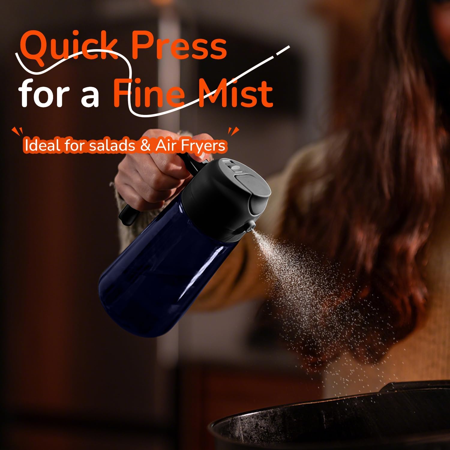 - Innovative Spray Nozzle Design: Offers precise control with a fine mist from quick presses and a steady stream from slow presses. A reliable cooking oil sprayer for all your cooking needs