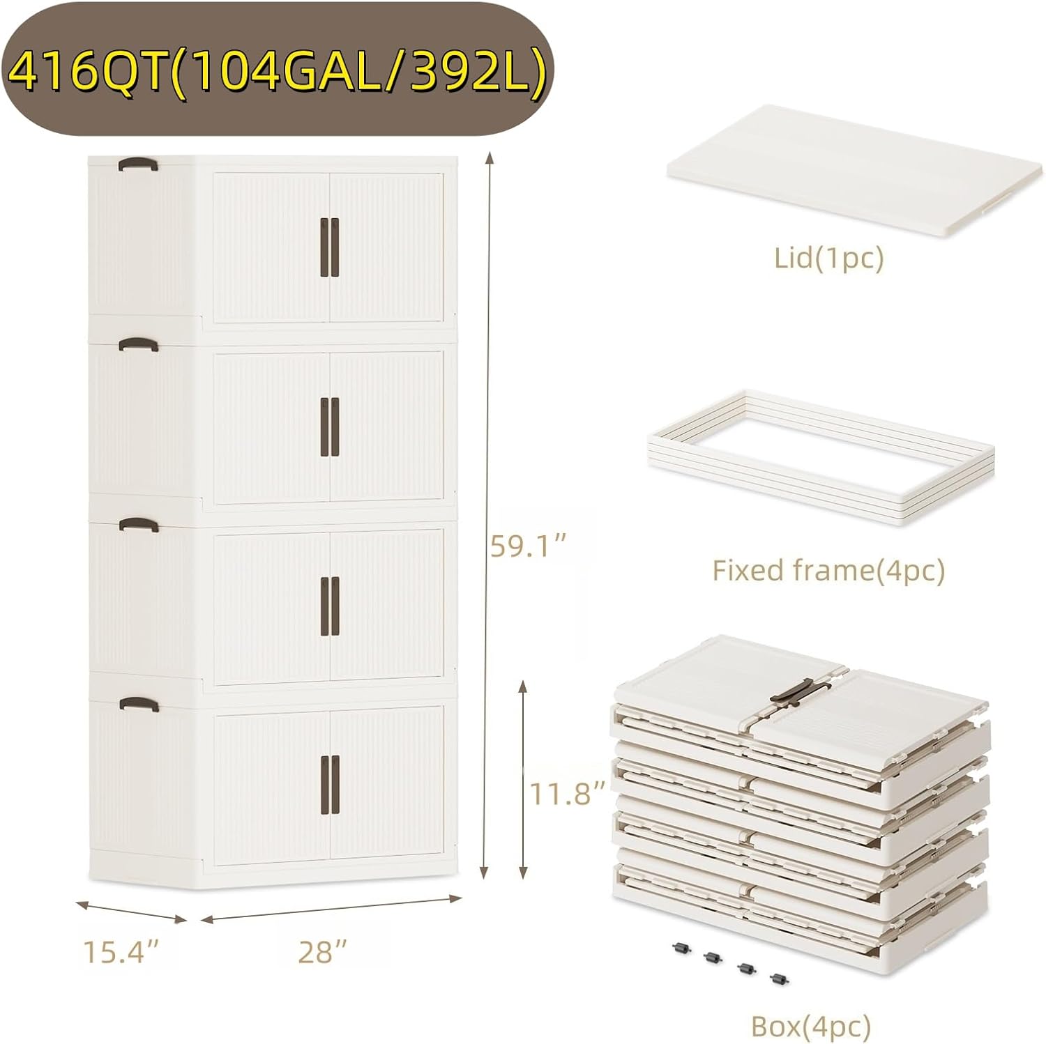 Stackable Storage Bins with 1 lid Stackable Storage Drawers for Clothes, Collapsible Stackable Storage Bins for Clothes, Home, Office (4 tiers)