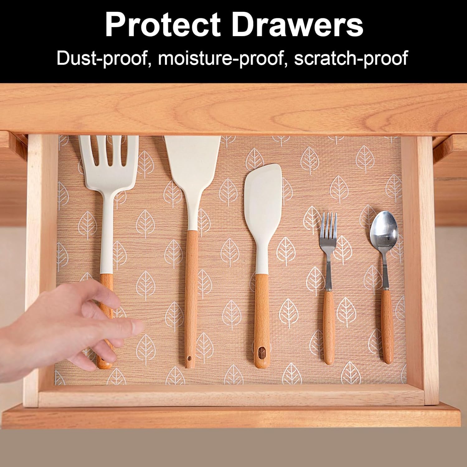 - WIDE RANGE OF USE: The drawer liner can be used in multiple areas of the home, providing surface protection in your home organization, cupboard, refrigerator, and bathroom. They can be used as kitchen liners to ensure cleanliness or as refrigerator mats to keep food and fruits fresh. They are also suitable as cabinet mats, drawer liners, cupboard pads, desk liners, and table pads.