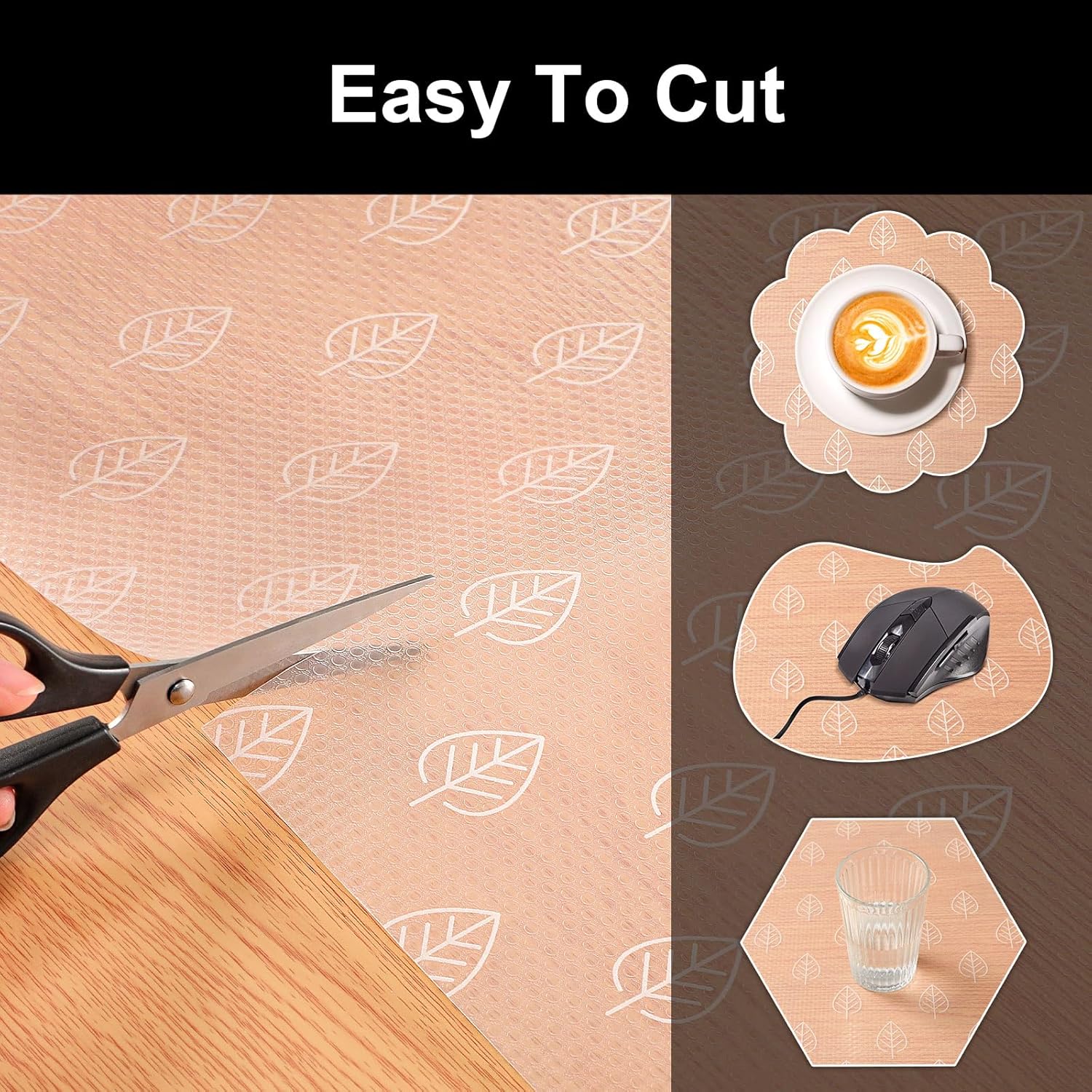 - EASY TO INSTALL AND CUT: The cabinet liners are easy to cut. You can easily trim them into the desired shape with scissors, place them on a drawer or table, and trim off any excess material. Our drawer liners are non-adhesive and easy to remove.