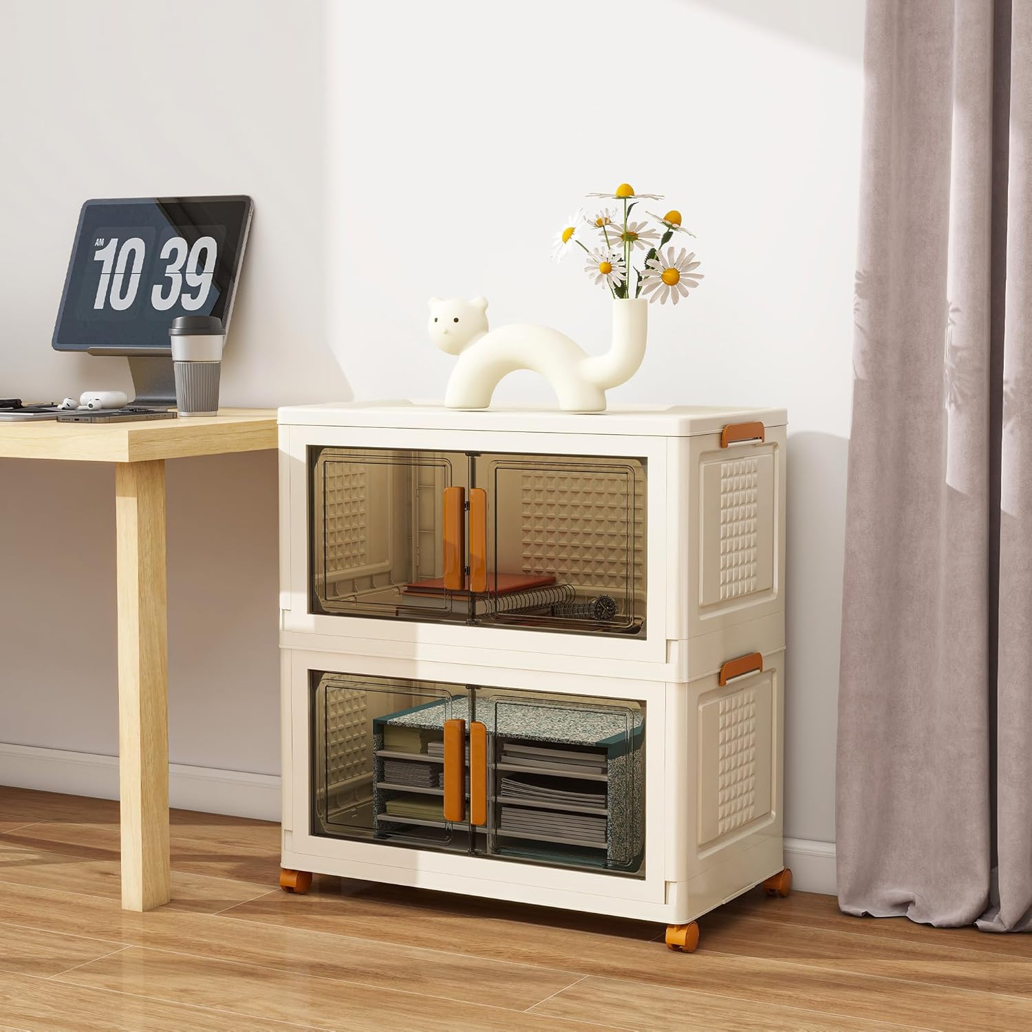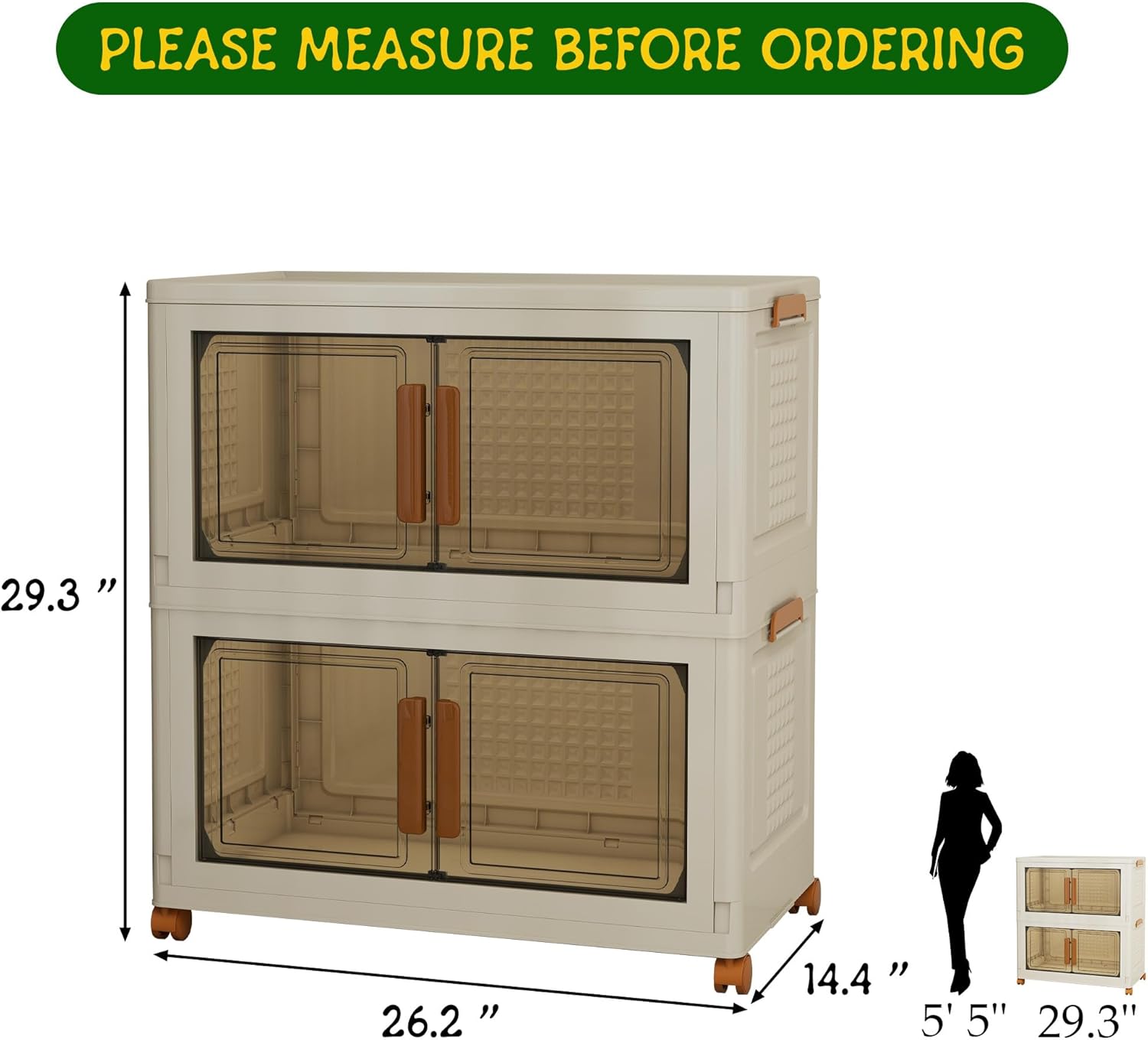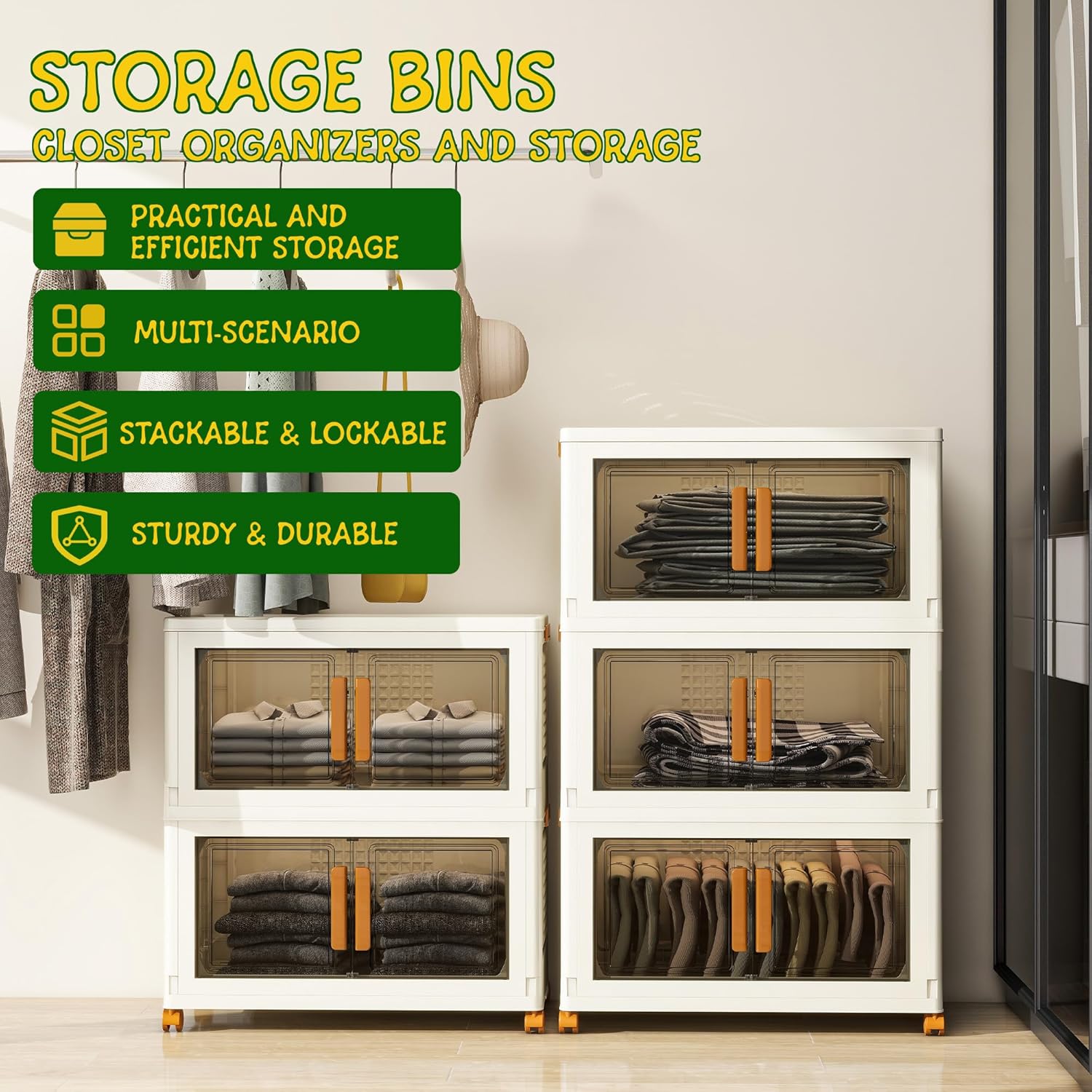 2 Tier Large Stackable Plastic Storage Bins with 1 Lid 95 QT/Tier, Collapsible Plastic Box Storage Bin with Wheels, Home Containers Boxes Closet Organizers for Living Room, Office, Dorm