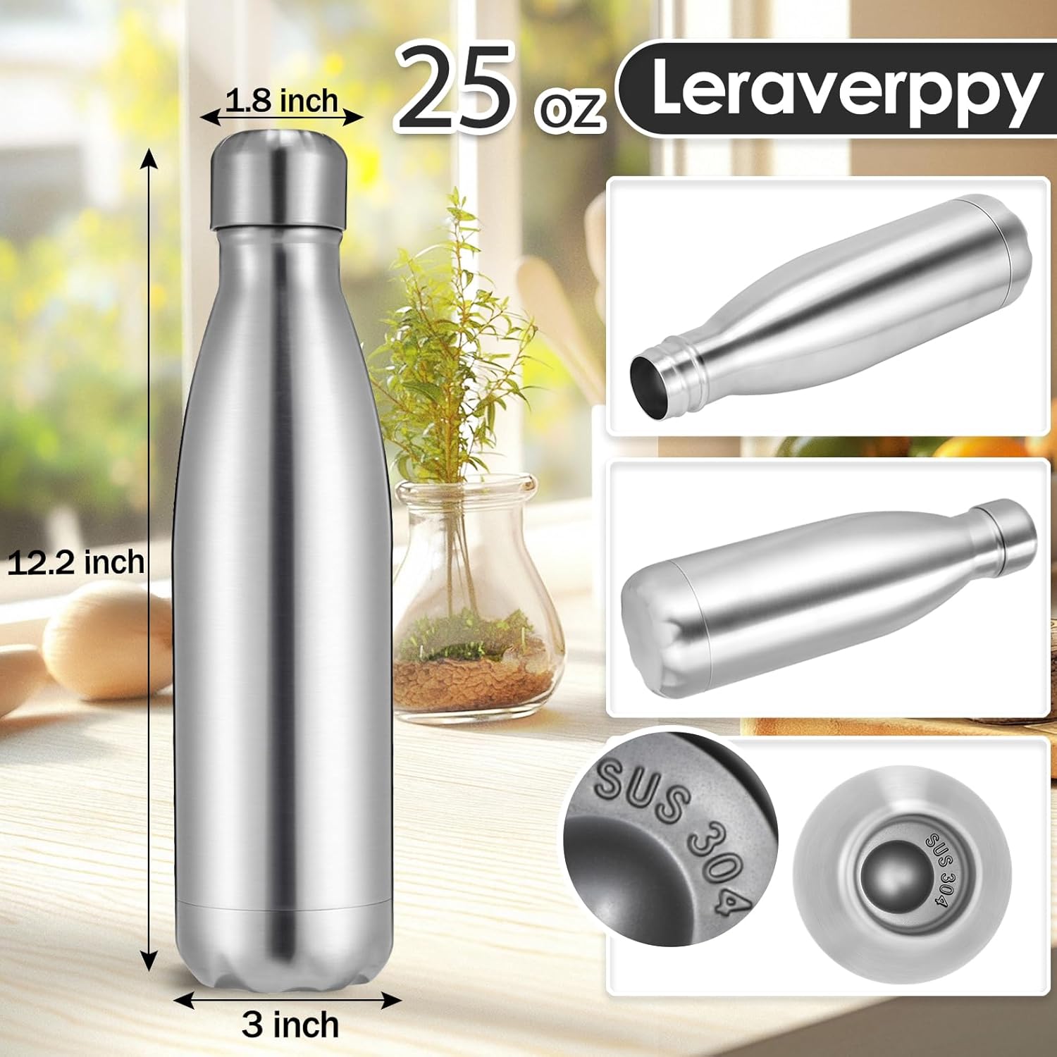 25oz Cola-Bottle Shaped Stainless Steel Leak-proof Water Bottle,Double Wall Vacuum Insulated Metal,Travel Mug For Sports Indoors & Outdoors,BPA-Free School Kid FlaskS,Silver(4 Pack)